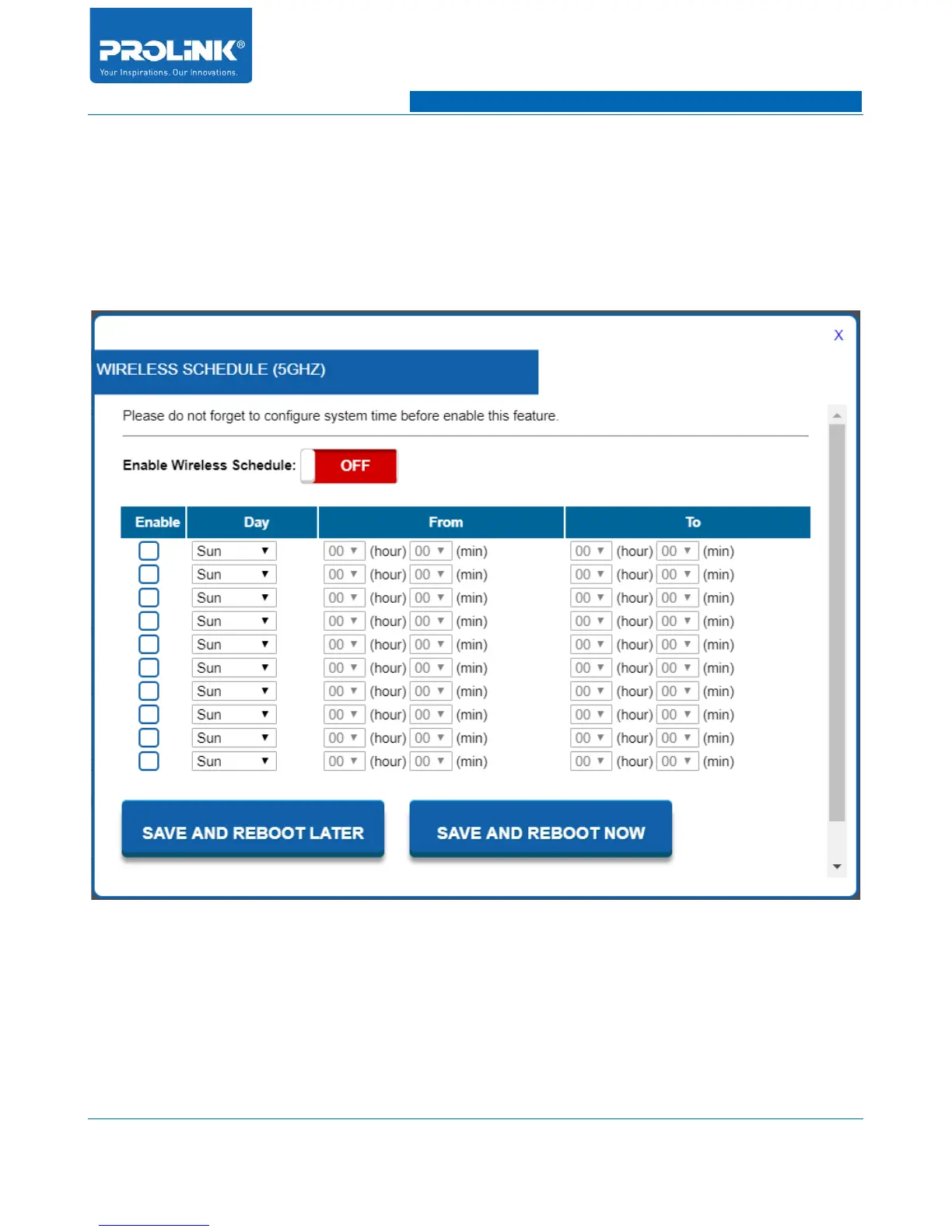 window will appear showing the Wireless Schedule (5GHz). To start enable the wireless schedule you