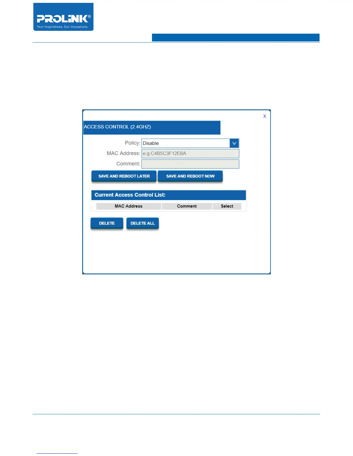 2.4GHz wireless signal. “Deny Listed MAC Address” will denied the listed MAC Address from