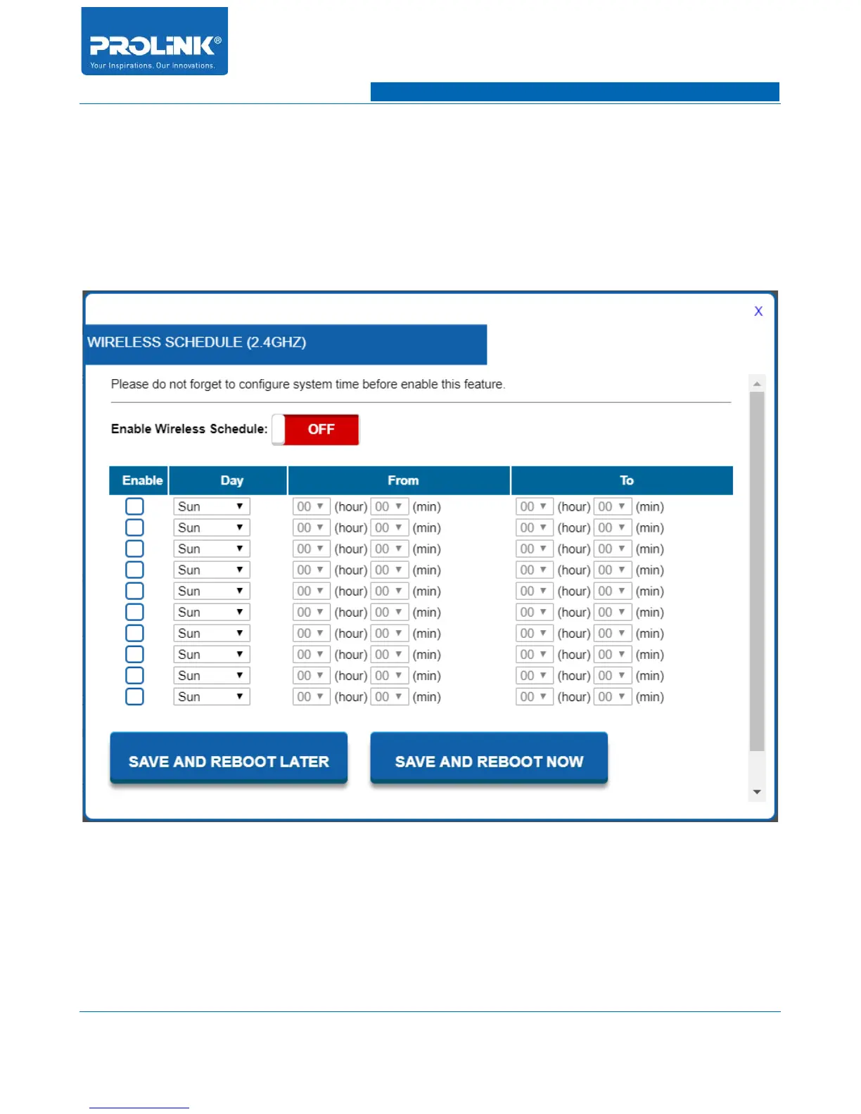 a window will appear showing the Wireless Schedule (2.4GHz). To start enable the wireless schedule