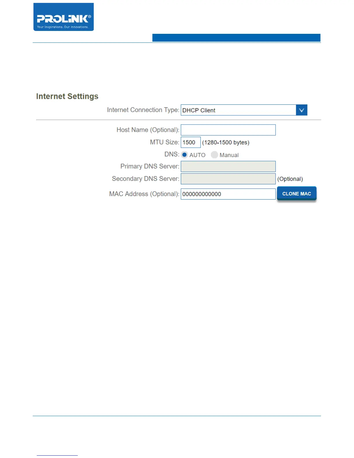 interface MAC address on the router. You can use “CLONE MAC” button to replace the