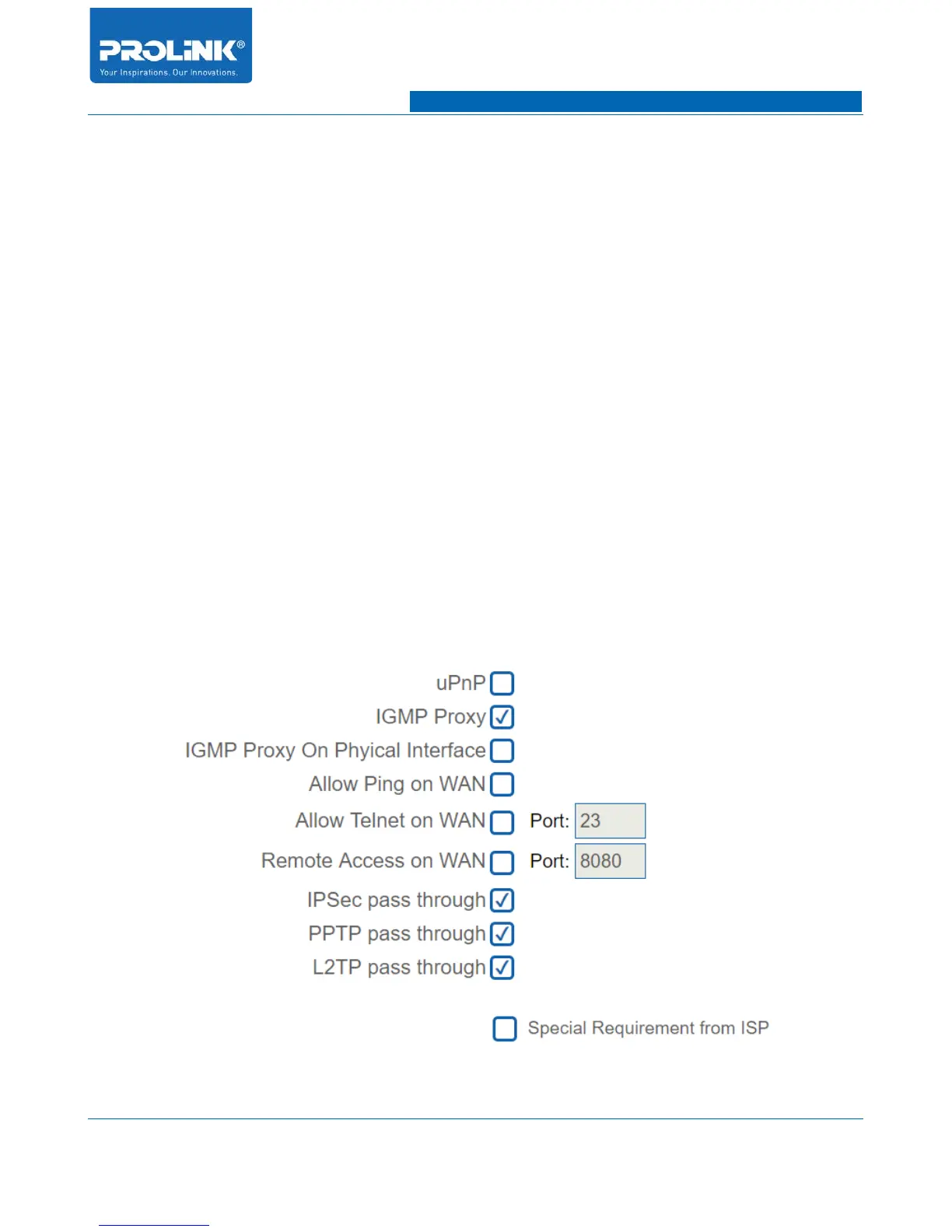 • Secondary DNS Server: Enter the Secondary DNS Server IP address assigned by your ISP.