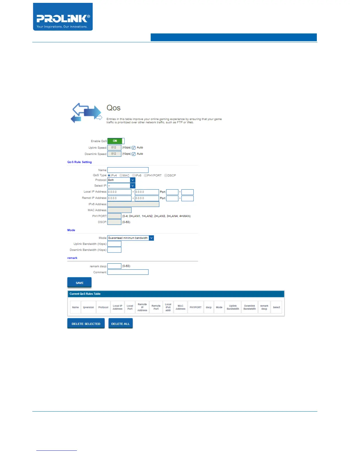 • Enable QoS: Enable and disable QoS function.