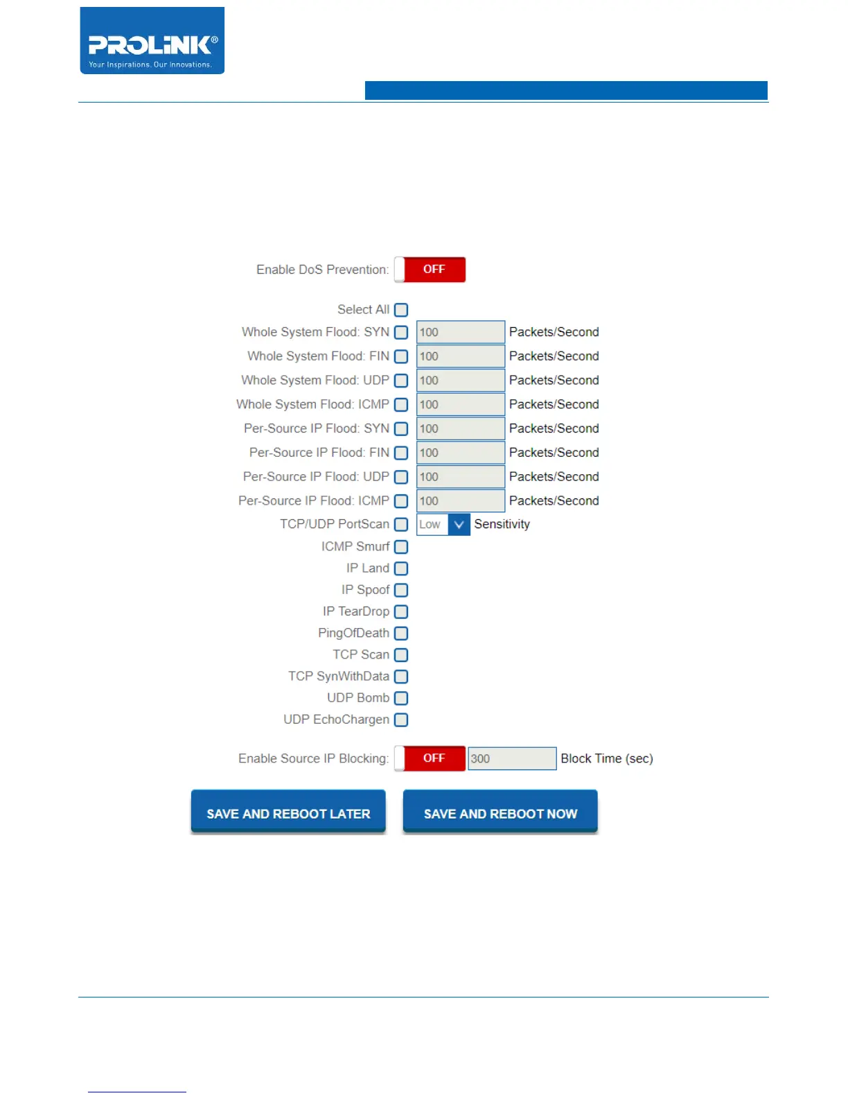 useless traffic. PRC3801 is come with DoS attack protection. To enter and configure the setting go to