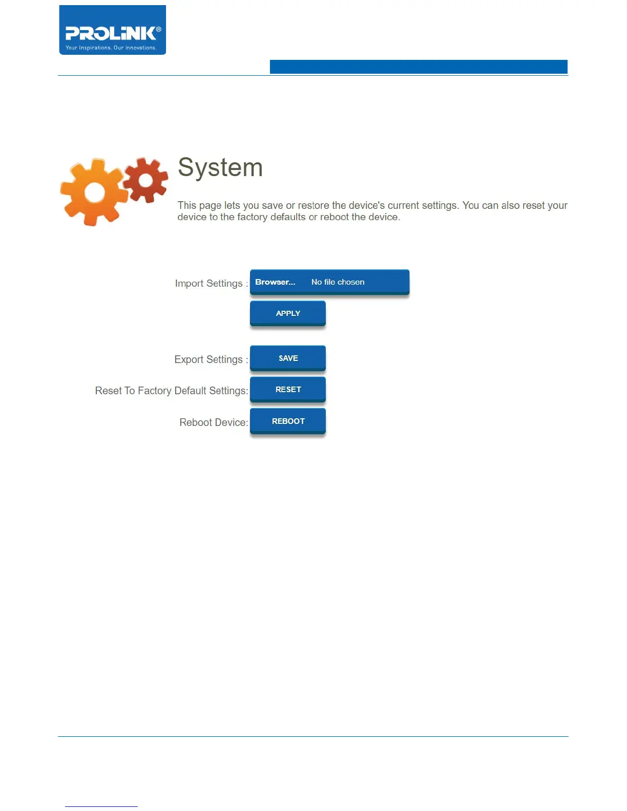 Go to Management → System to enter the System configuration page. In this page you could Import
