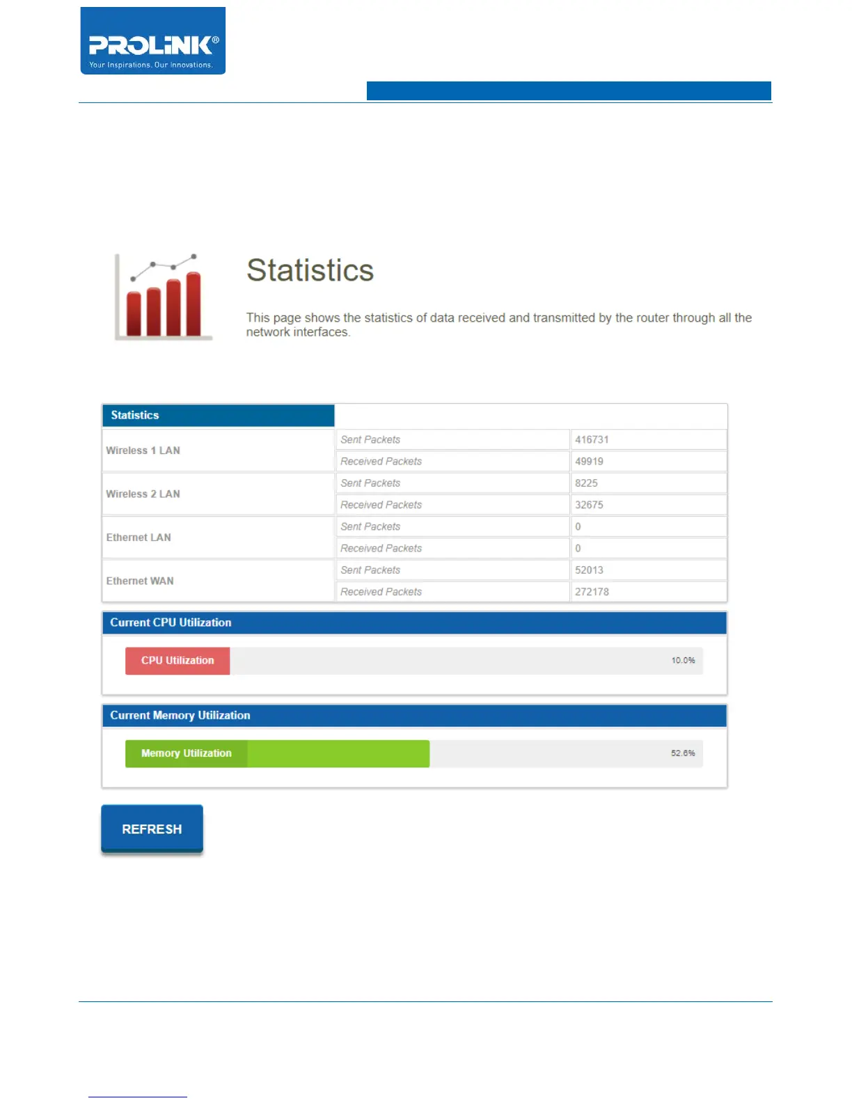 Statistic page you can view the number of packet that pass through the router on the WAN, LAN and