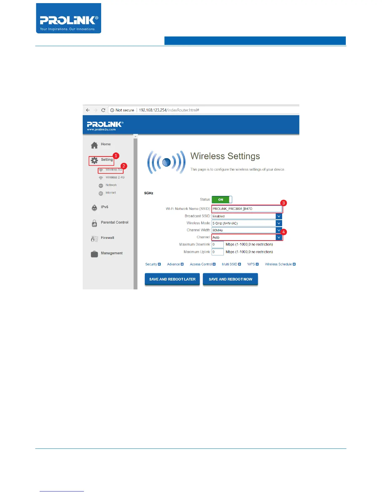 identical SSID. To change the SSID navigate to Setting → Wireless 5GHz.