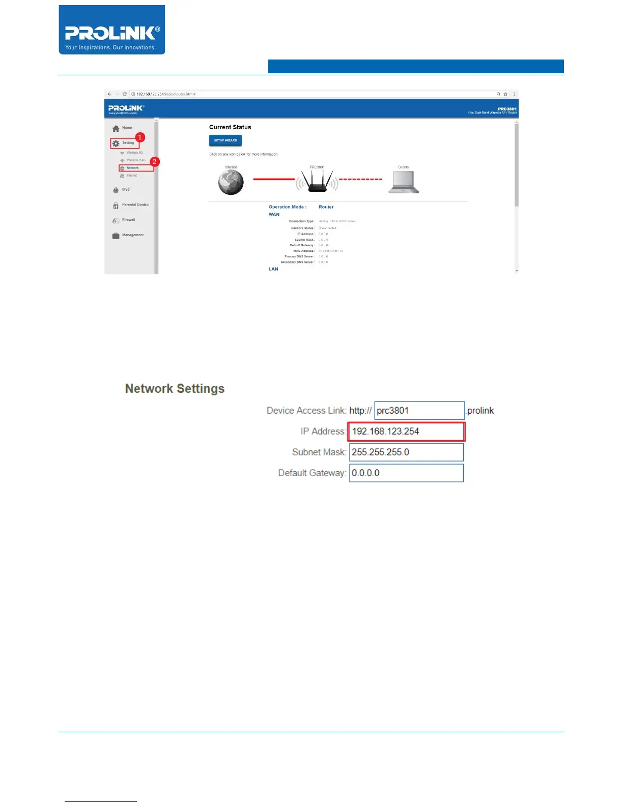 3. After reboot, in order to enter the Web page of PRC3801 you would need to use the latest IP