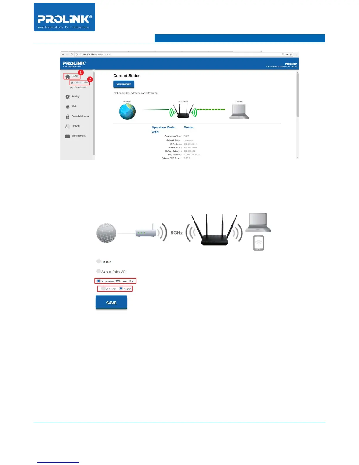 5. In Operation Mode page select Repeater/Wireless ISP then choose your prefer backhaul