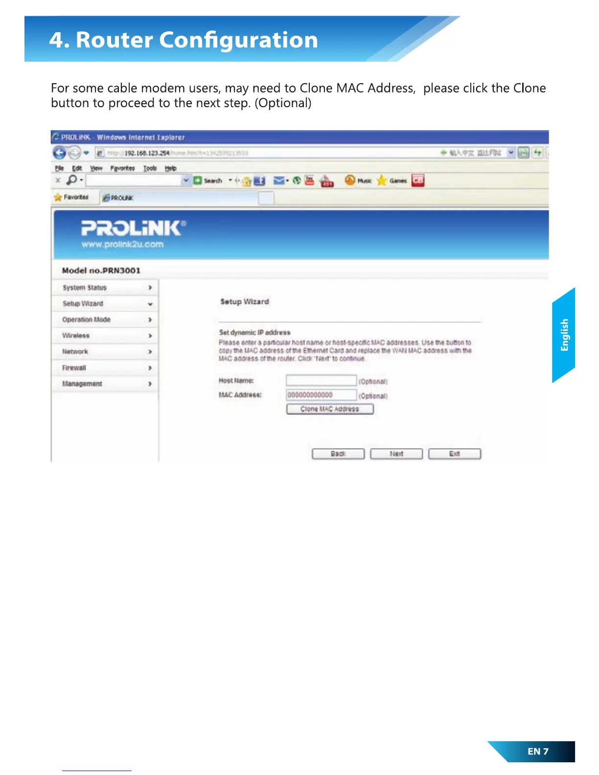 PROLiNK PRN3001 - Configure Cable Internet (Clone MAC)