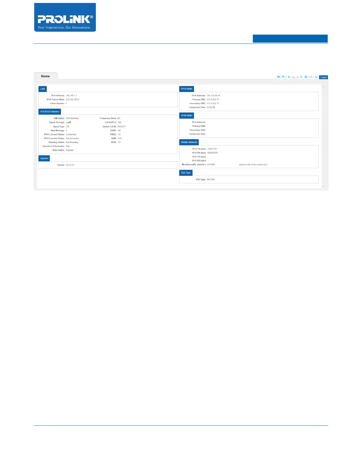 continuously update with the currently status. Information consists of LAN, 4G/3G/2G Modem,