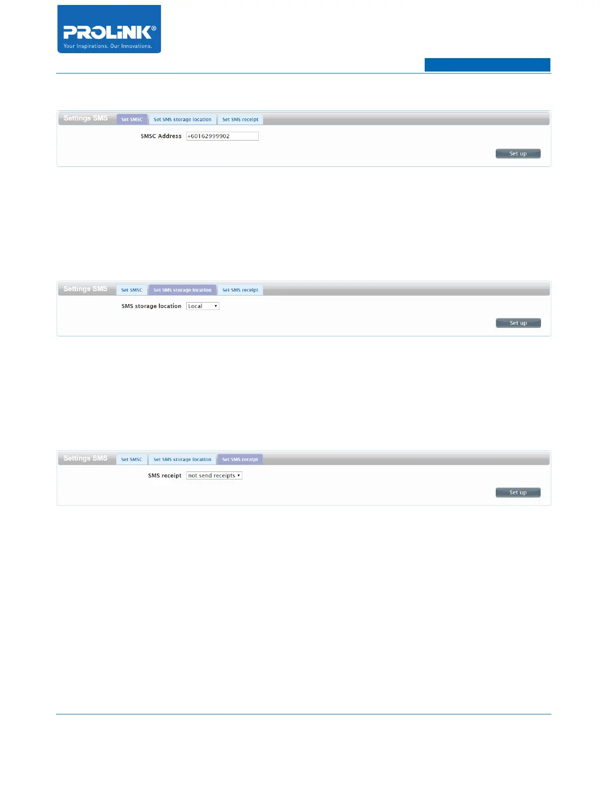• Set up: To save the current configuration of SMS receipt.