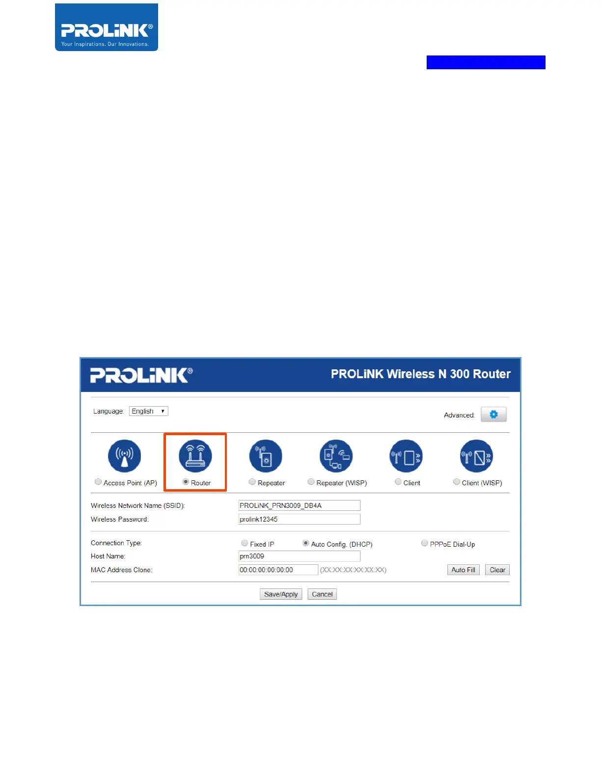 web utility, by default, the PROLiNK PRN3009 is setup as Router Mode. It’s recommended to