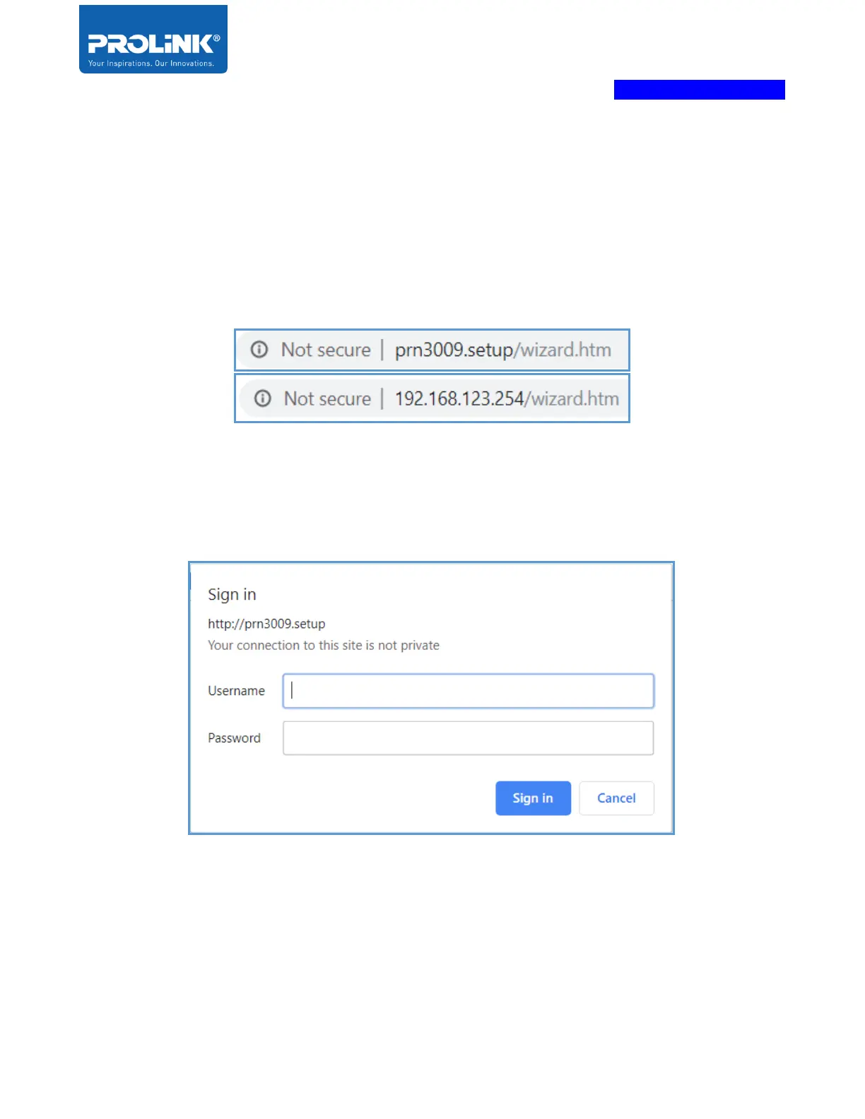 “http://192.168.123.254” and default domain name link is “http://prn3009.setup”.