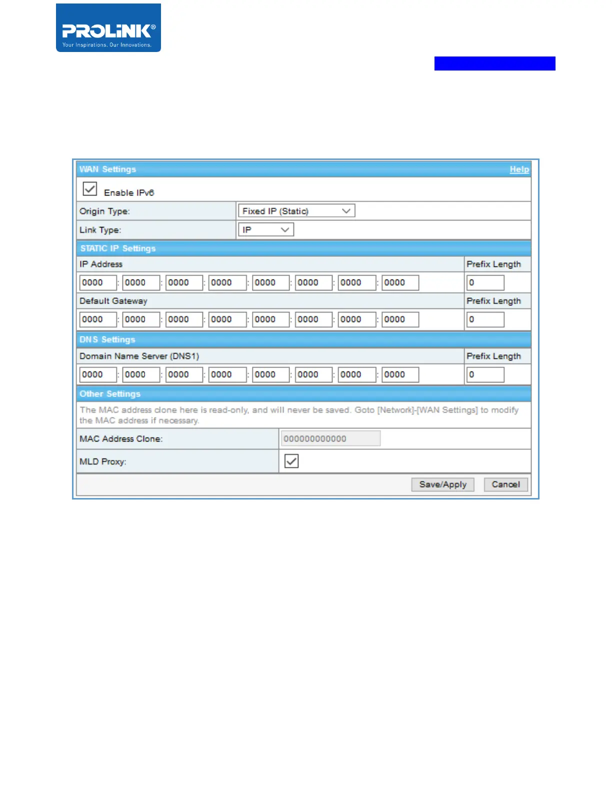 PROLiNK PRN3009 - Fixed IP (Static) + Link Type IP