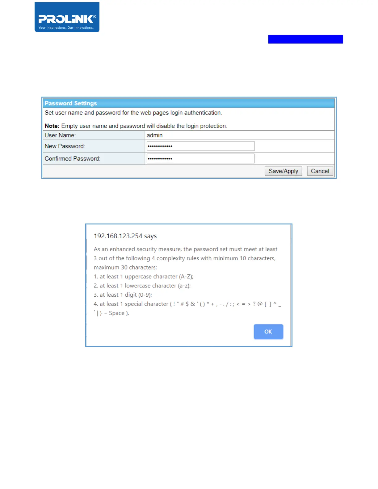 PROLiNK PRN3009 - Password