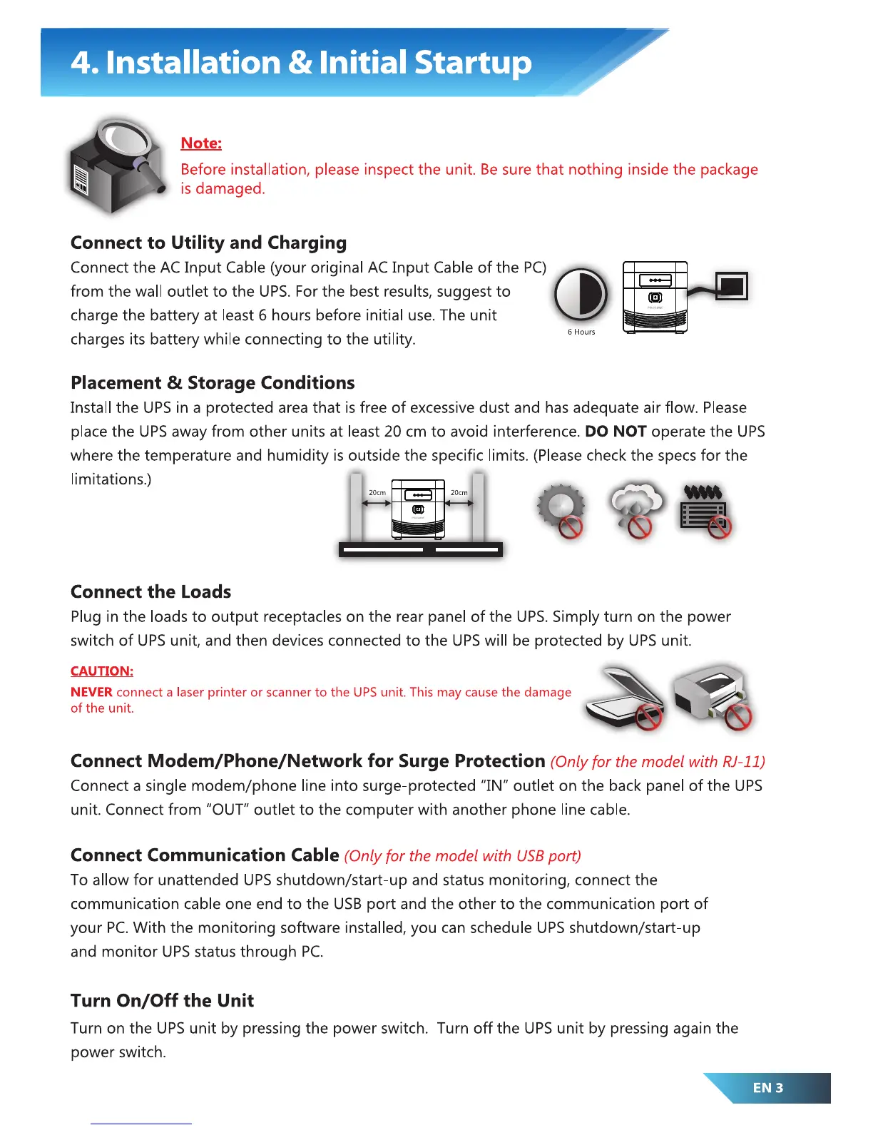 PROLiNK PRO1200SV - Installation & Initial Startup; Connect to Utility and Charging; Placement & Storage Conditions; Connect the Loads