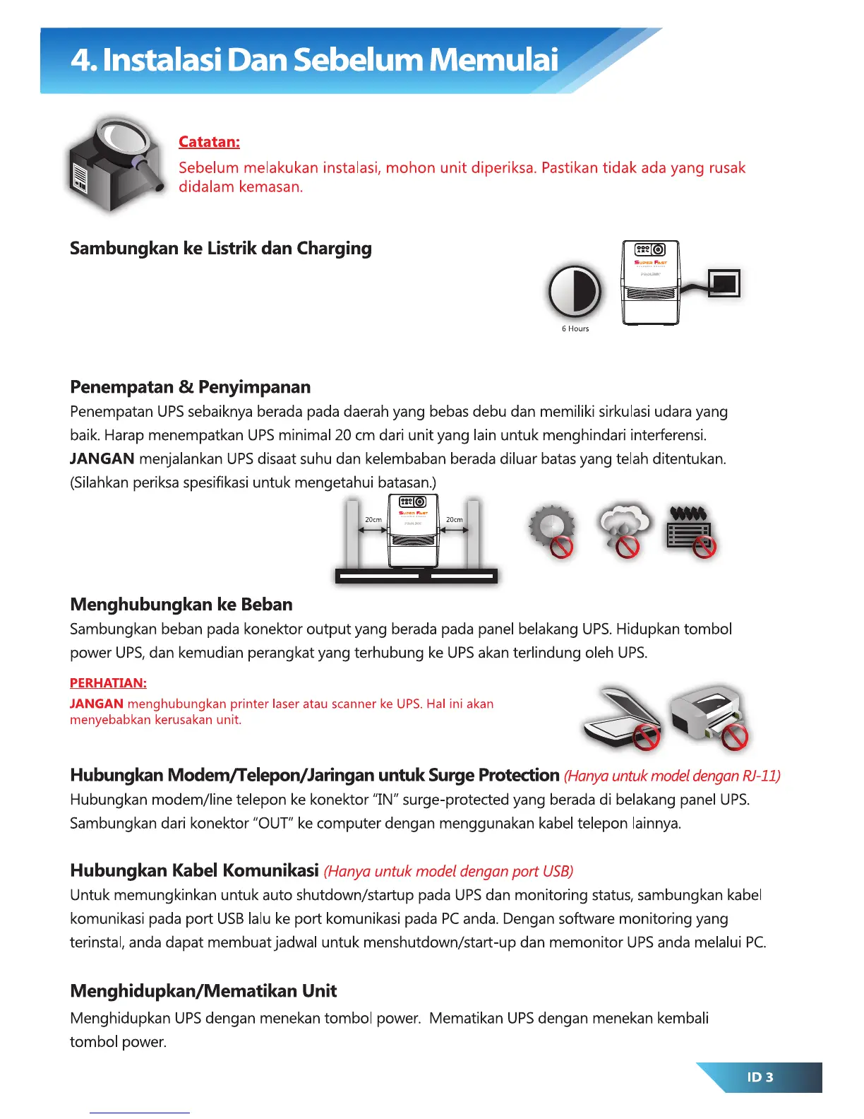 baterai minimal 6 jam sebelum digunakan. Unit akan tercharge