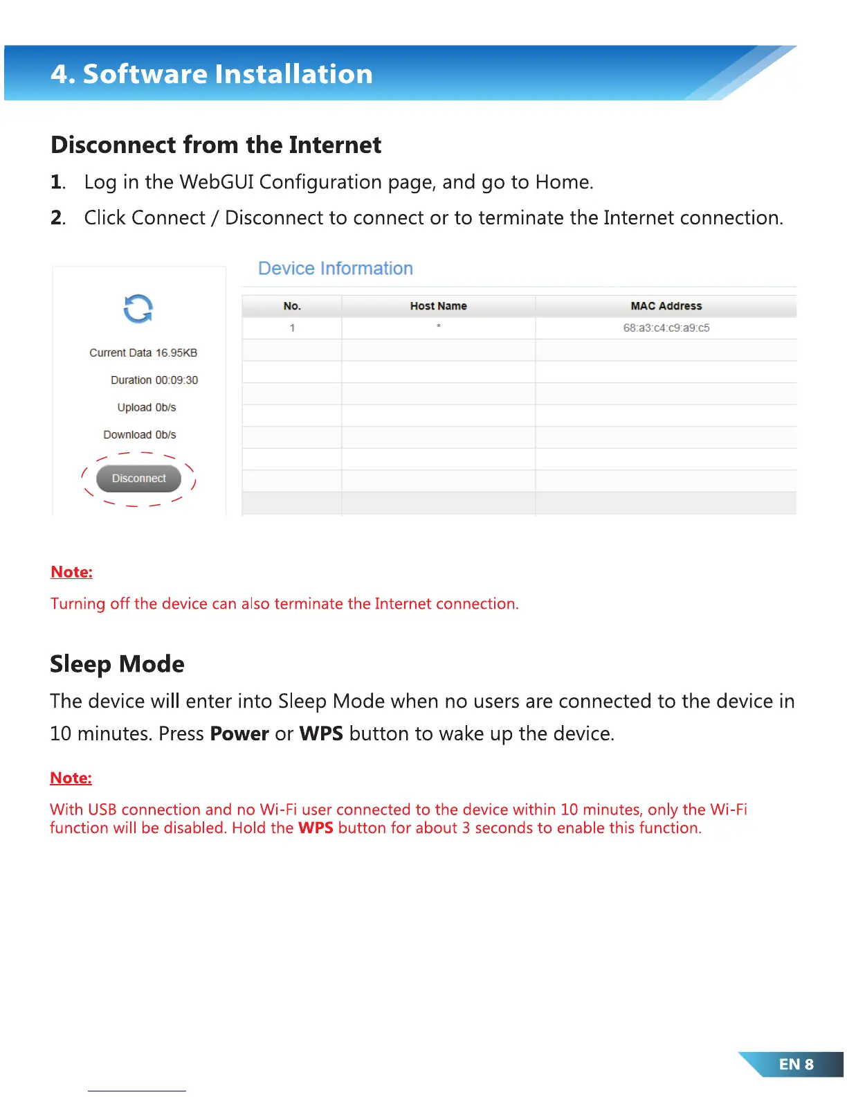 PROLiNK PRT7001H - Disconnecting Internet Connection; Understanding Sleep Mode