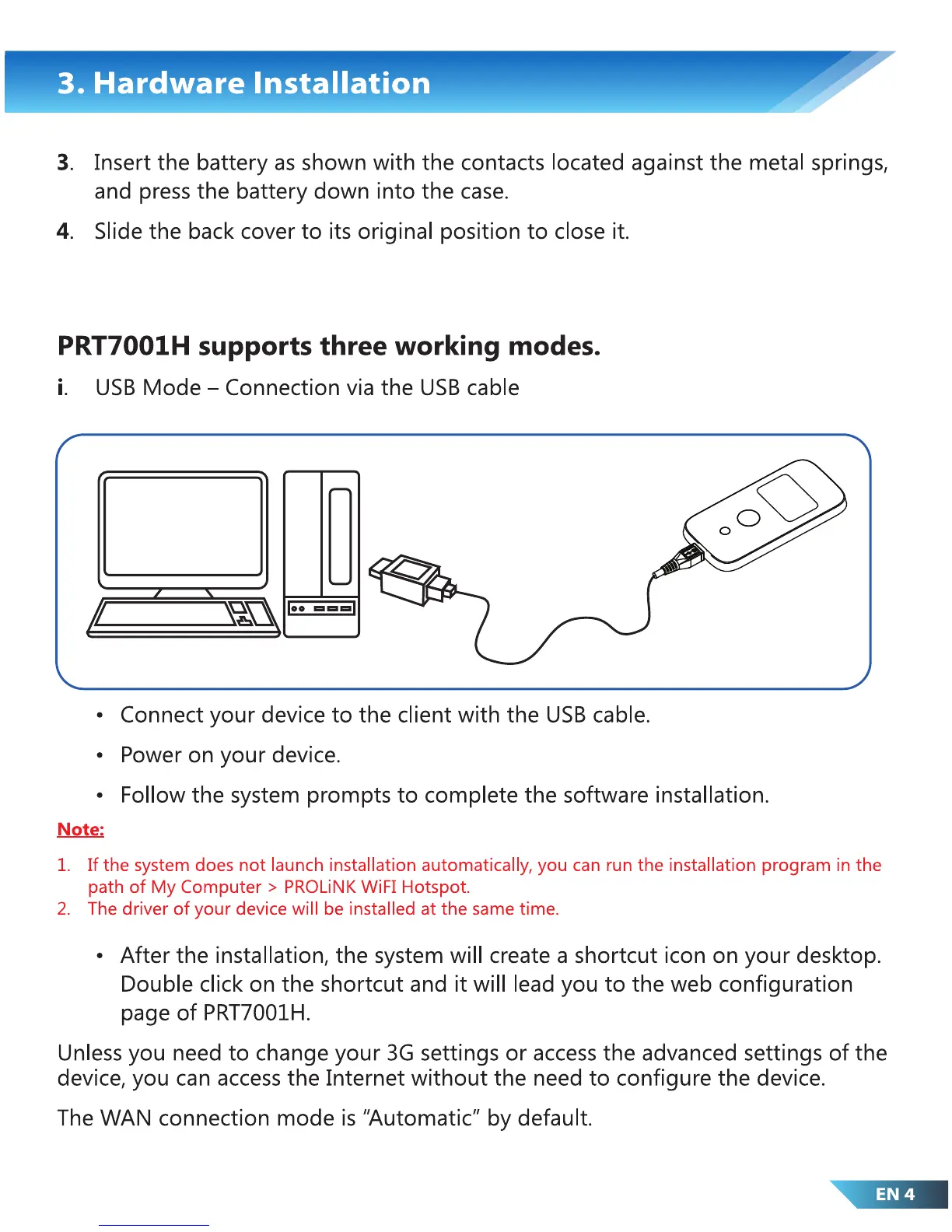 PROLiNK PRT7001H - USB Mode Connection Setup