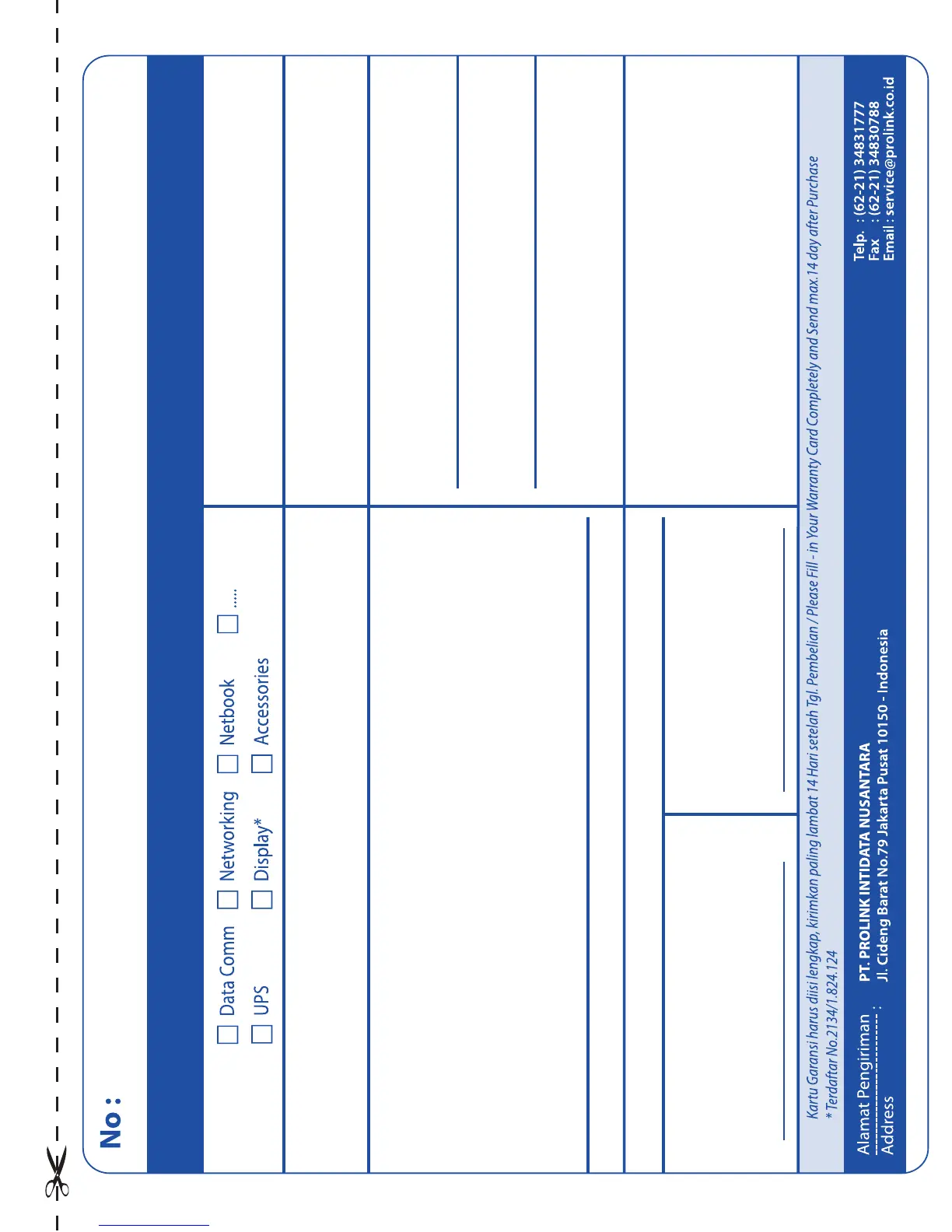 KARTU GARANSI / WARRANTY CARD