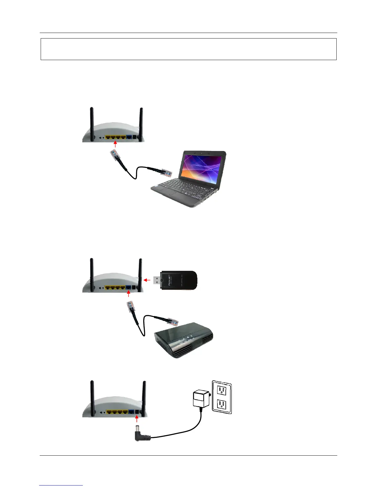 Finally, connect the PWH2001 Wireless HSPA Router with a power to an outlet.