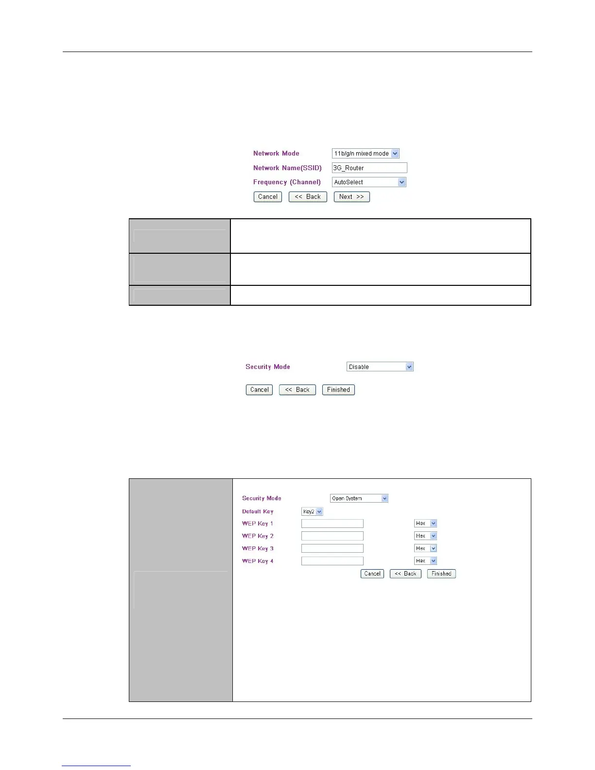 This step can set up wireless network mode, network name and channel.