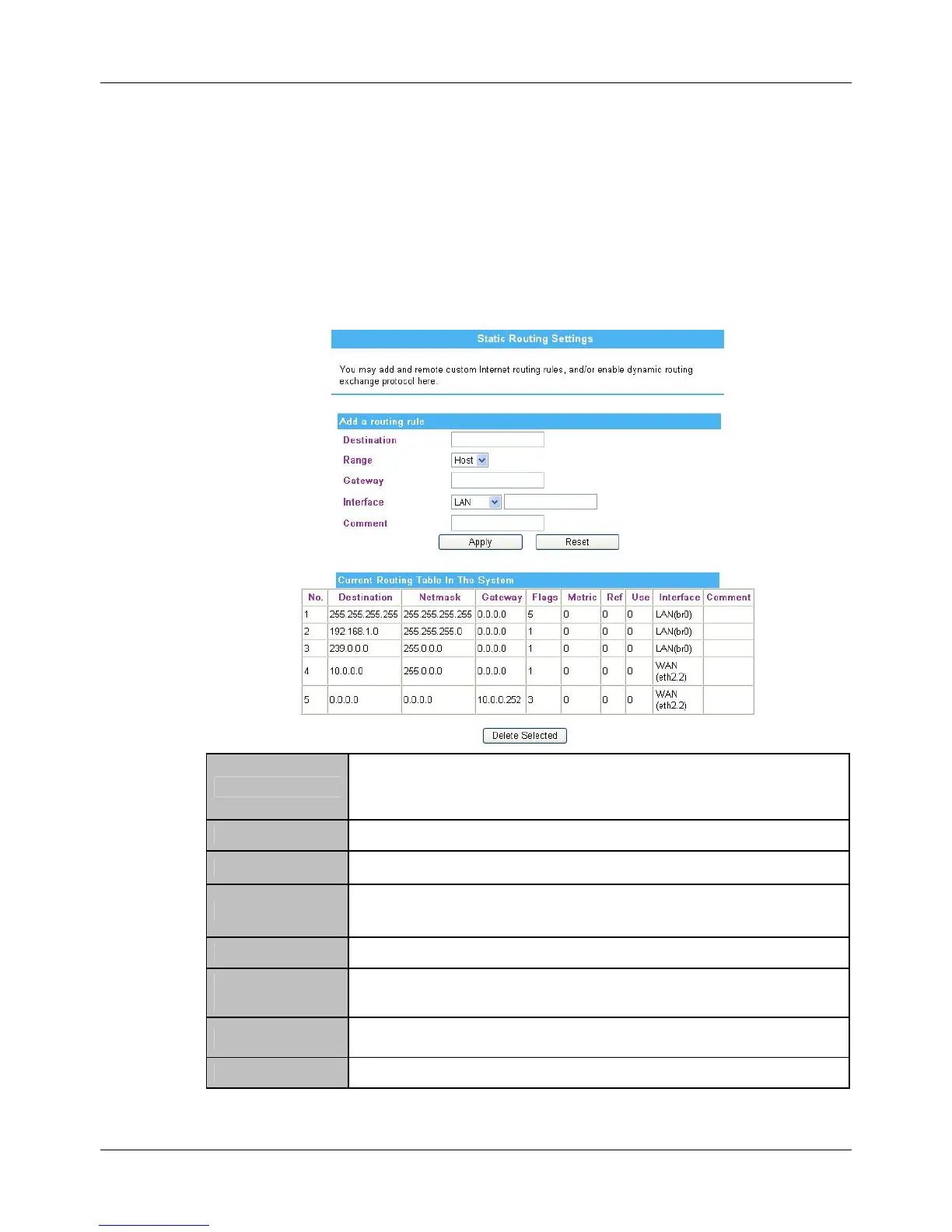 If you connect several routers with this Wireless Router, you may need to set up a predefined routing rule to