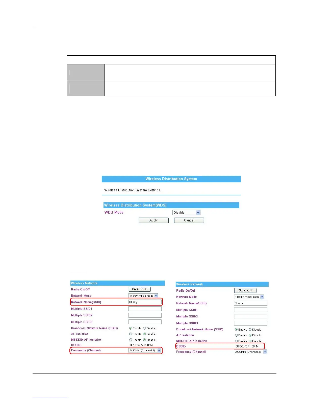 different wireless products might support different WDS settings. Thus, it is suggested to use the