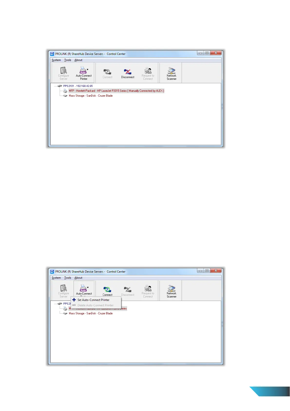 device until you “Disconnect” that USB device. That is to say, only one PC is allowed to connect the USB