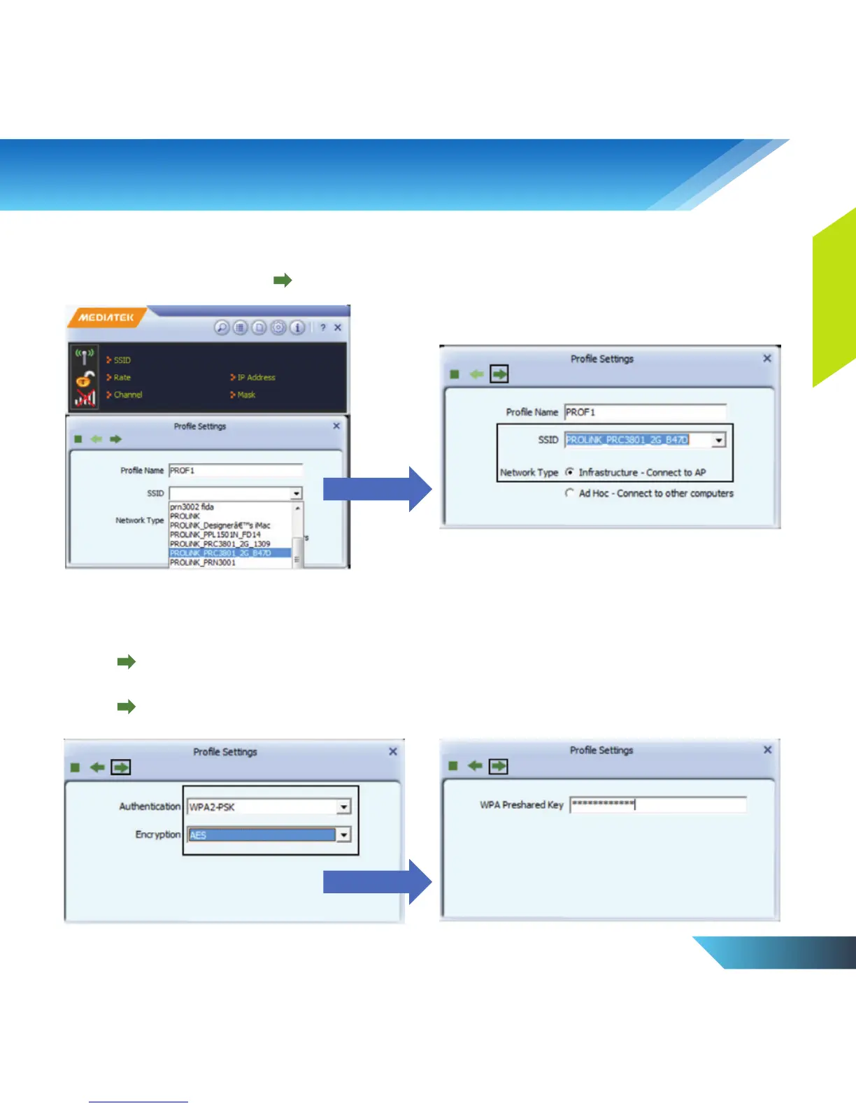 3. Select the wireless access point’s SSID and “ Infrastructure – Connect to AP