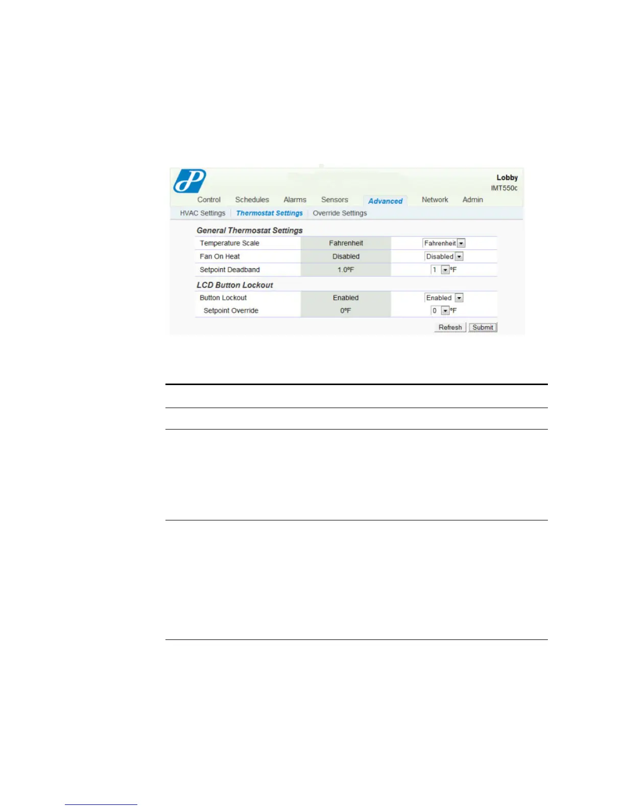 Table 2-9 Advanced - Thermostat Settings Field Descriptions