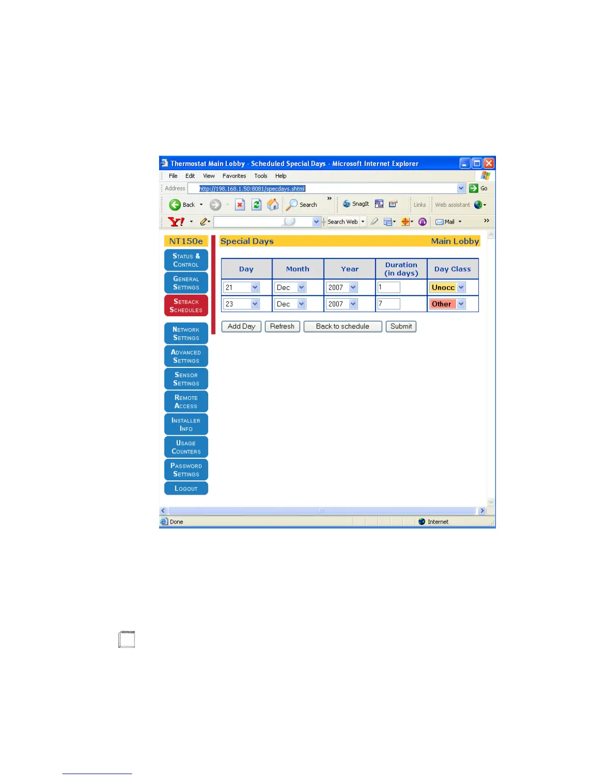 3 Click Submit. The Setback Schedules Page (page 3-19) appears.