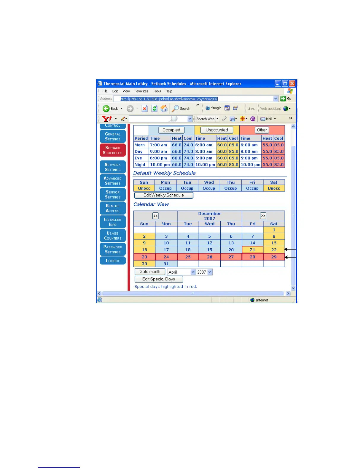 Proliphix Professional NT100e/h - Figure 3-12 Setback Schedules Page
