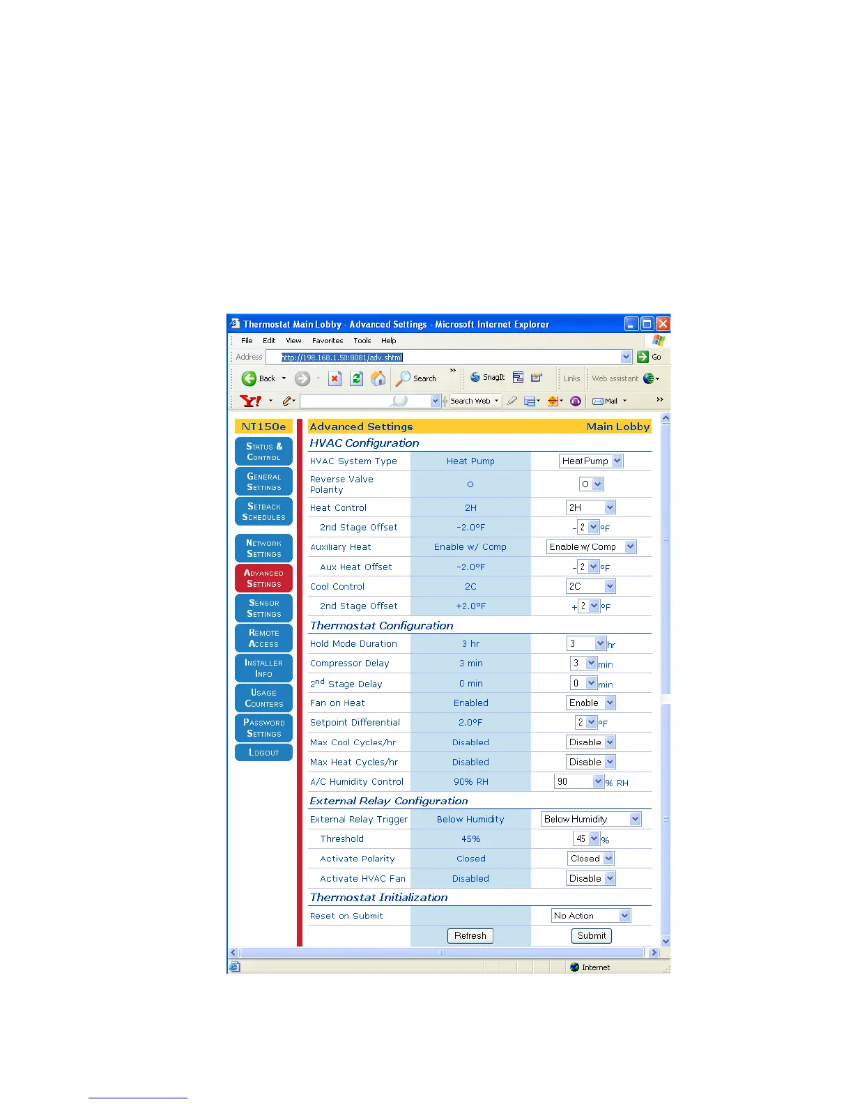 Figure 3-14 Advance Settings Page - Heat Pump HVAC