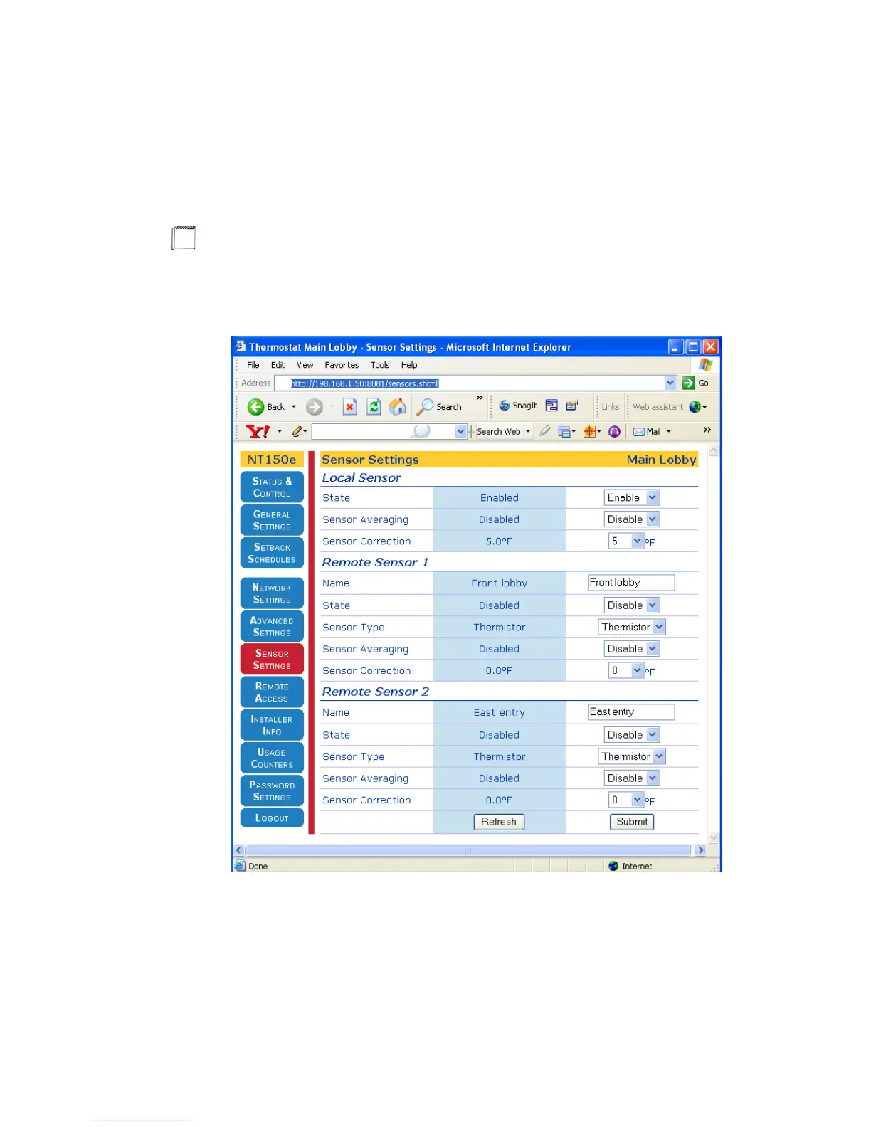 Figure 3-16 Sensor Settings Page