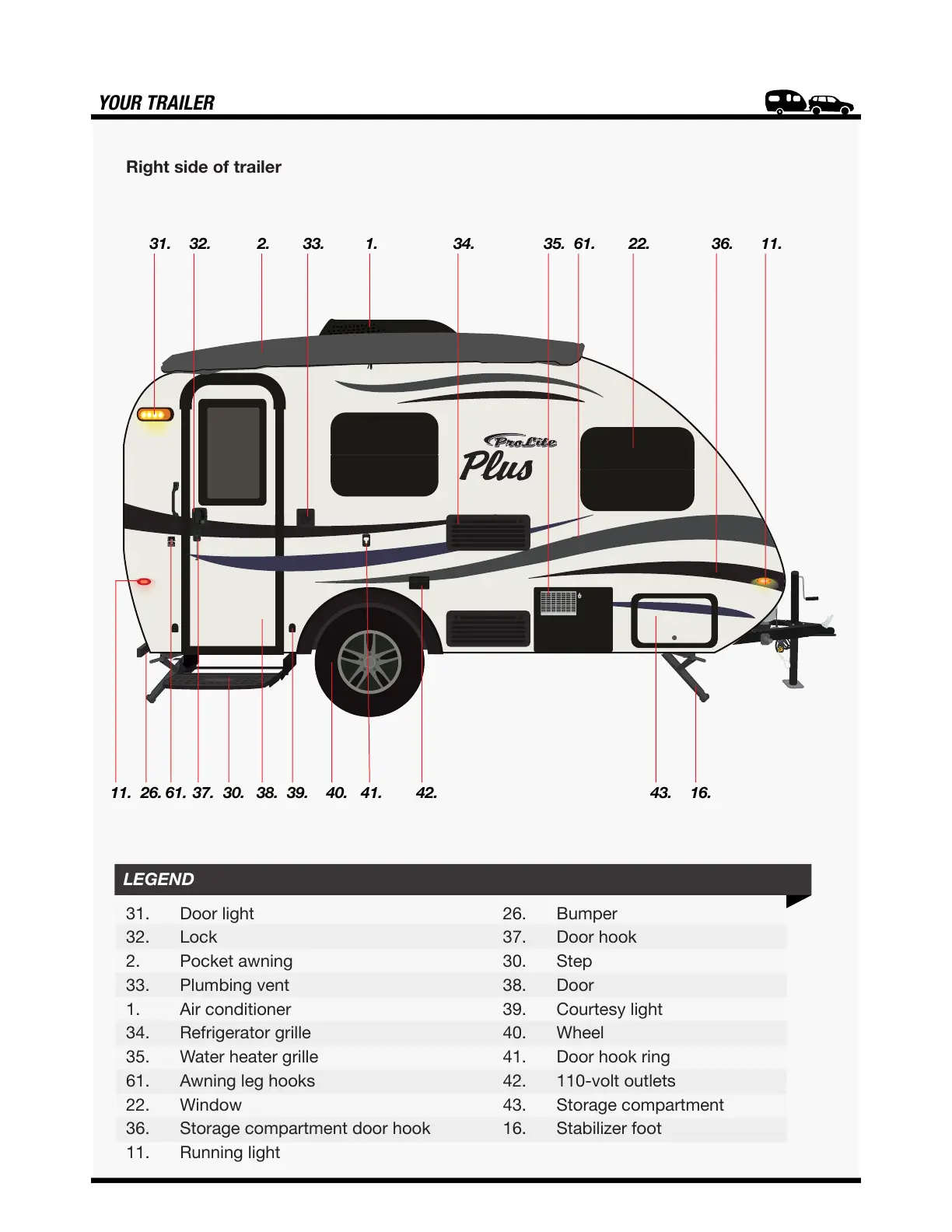 61. Awning leg hooks 42. 110-volt outlets