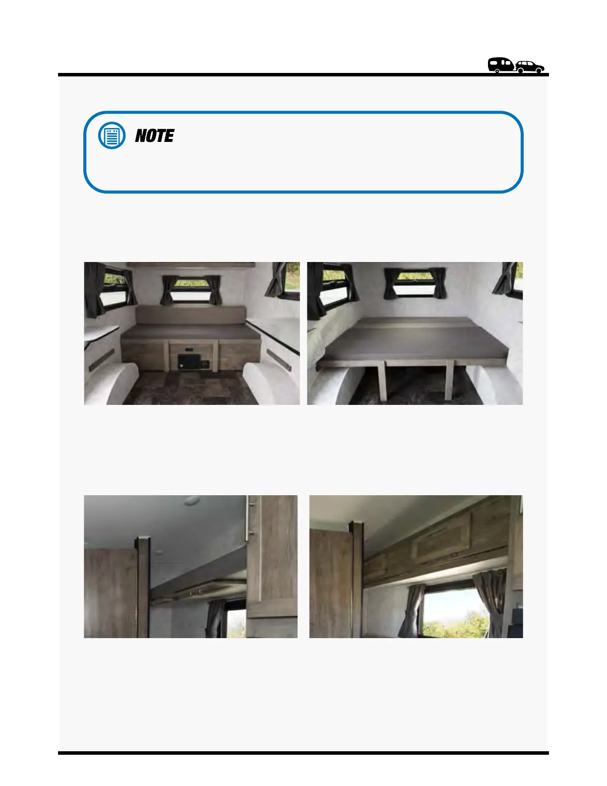 (if applicable), and remove stowable sink and stove covers.