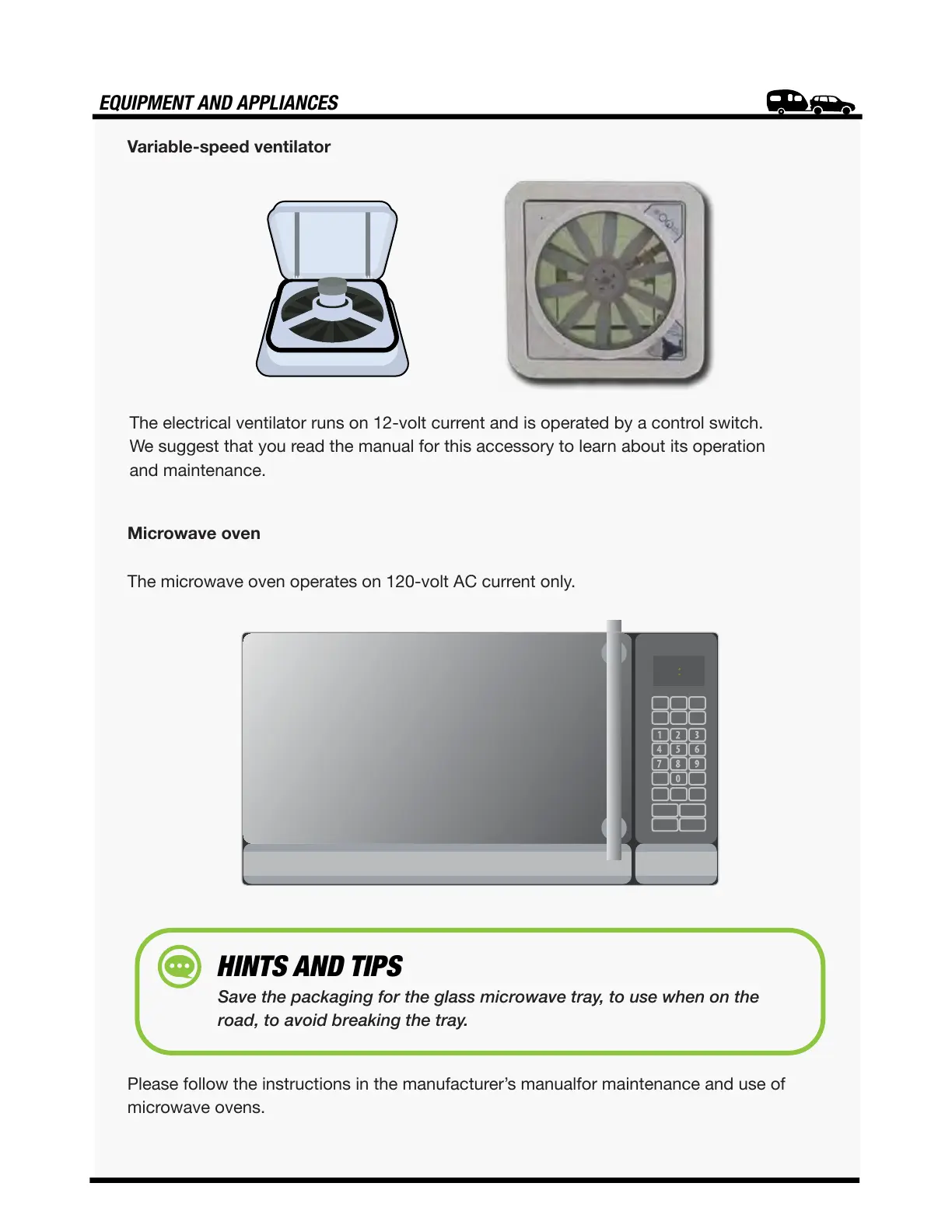 The electrical ventilator runs on 12-volt current and is operated by a control switch.