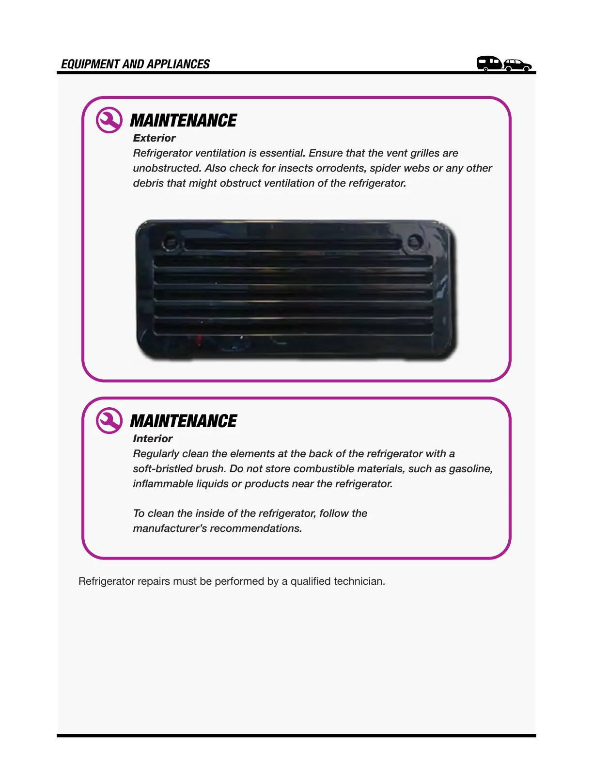 Refrigerator repairs must be performed by a qualified technician.
