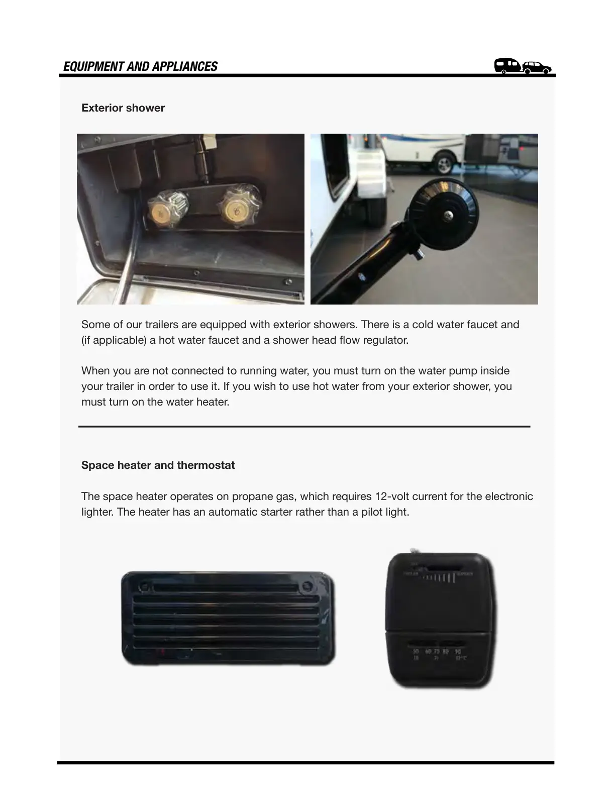 your trailer in order to use it. If you wish to use hot water from your exterior shower, you