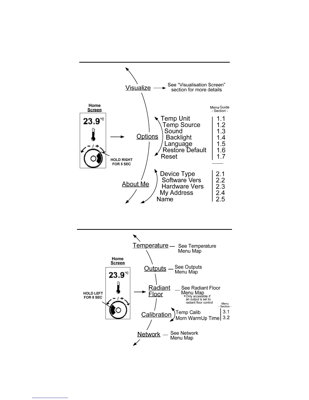 Prolon T1100 - Menu Maps; Visualisation and Options Menu Map; Configuration Menu Map