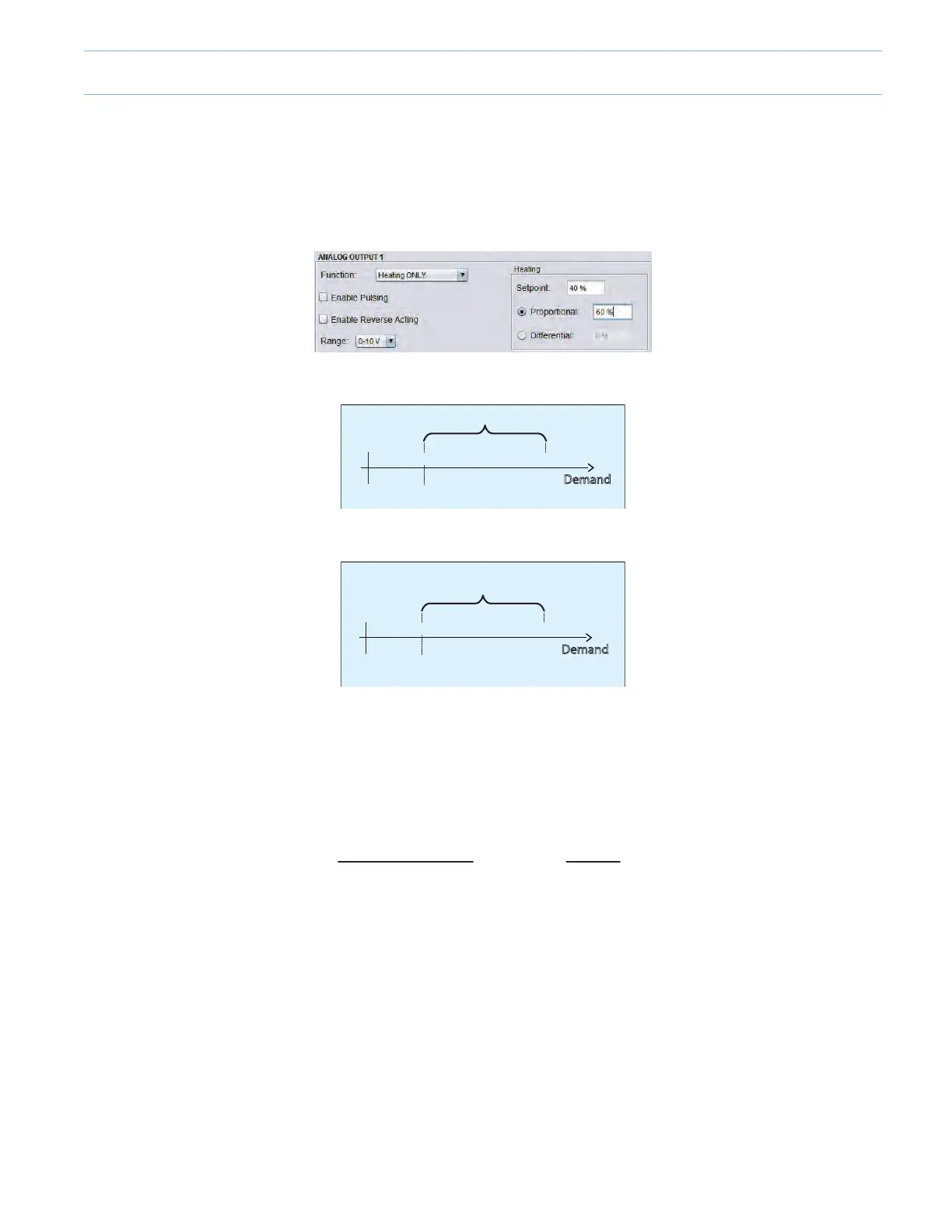 • Looking at the modulating heat, with a setpoint of 40% and a proportional band of 60%.