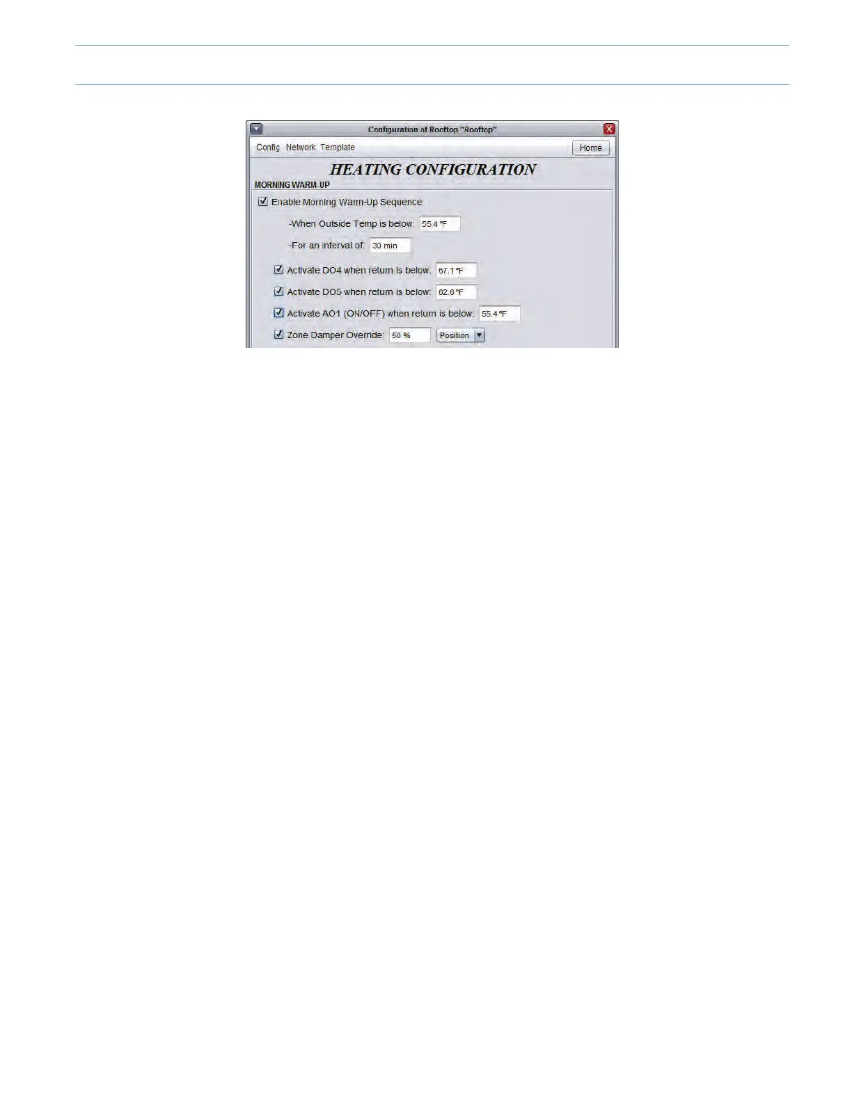 • Clickthe“ZoneDamperOverride”checkboxtoforceallzonedamperstoaspecicpositionwhentheMorningWarm-Up