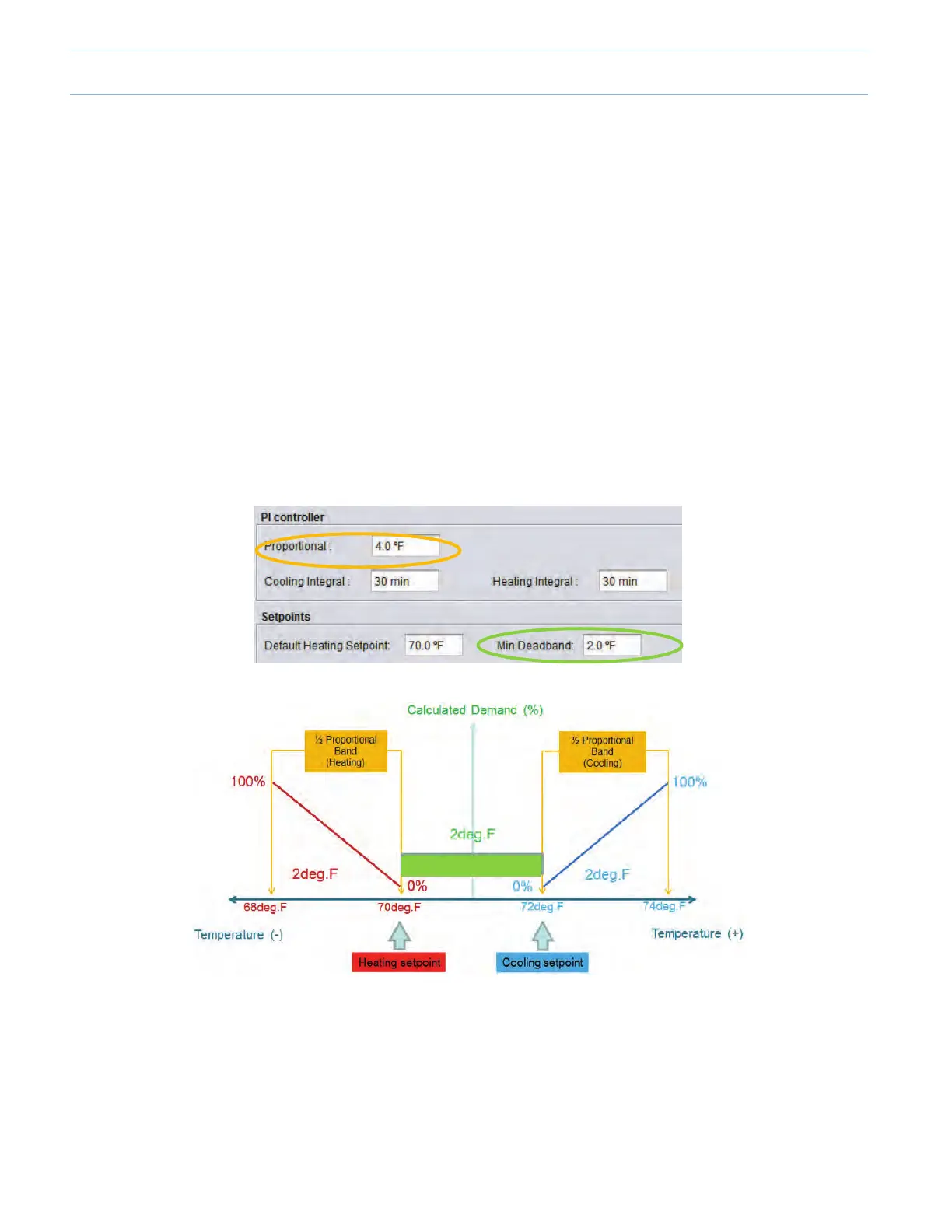 zoneisconsideredtobesatised.Inthegraphicabove,deadband=2.0ºFandcanbeconguredinthe“MinDeadband”