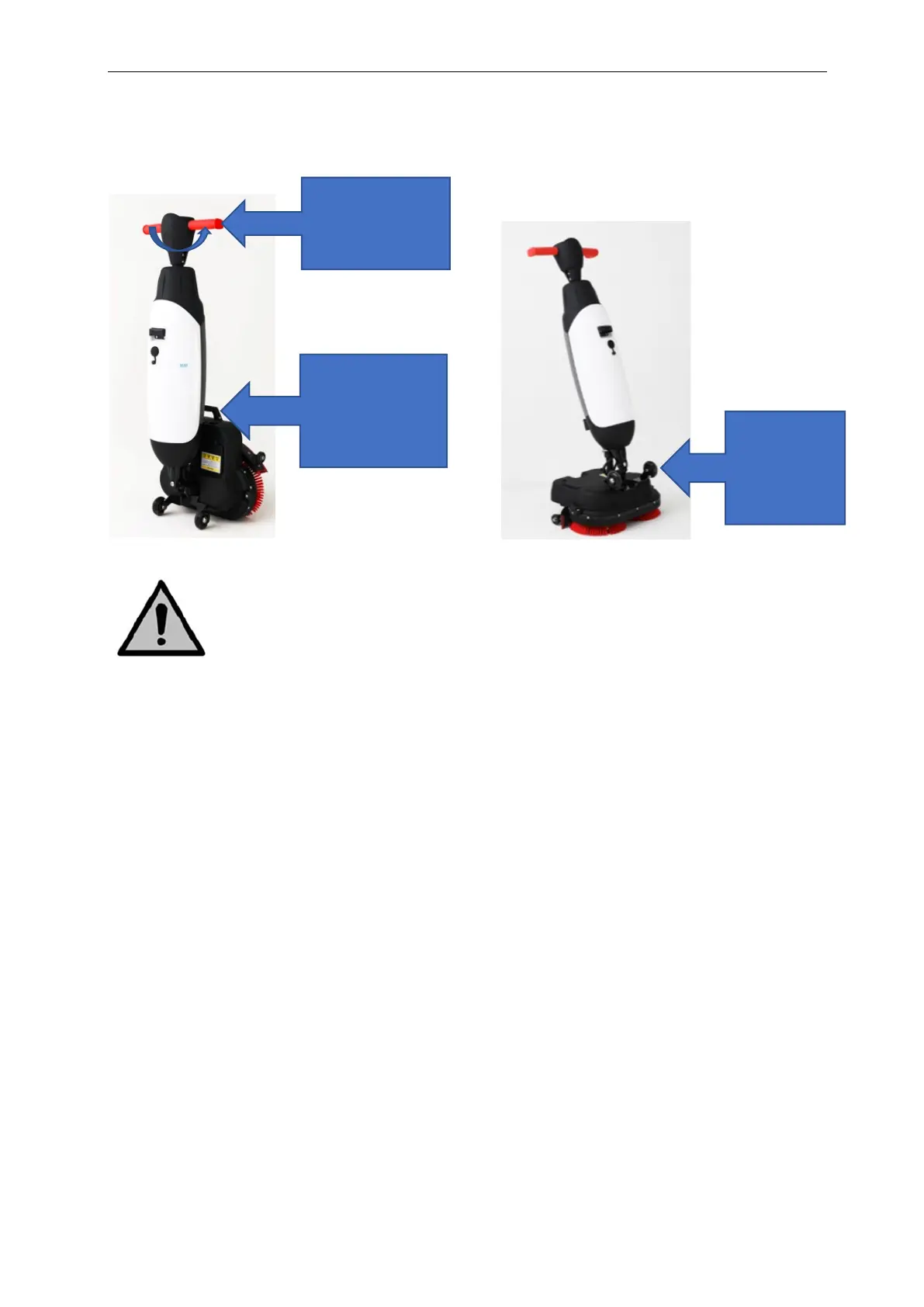 1. Crouch down while holding the carrying handle of the scrub deck firmly with one hand.