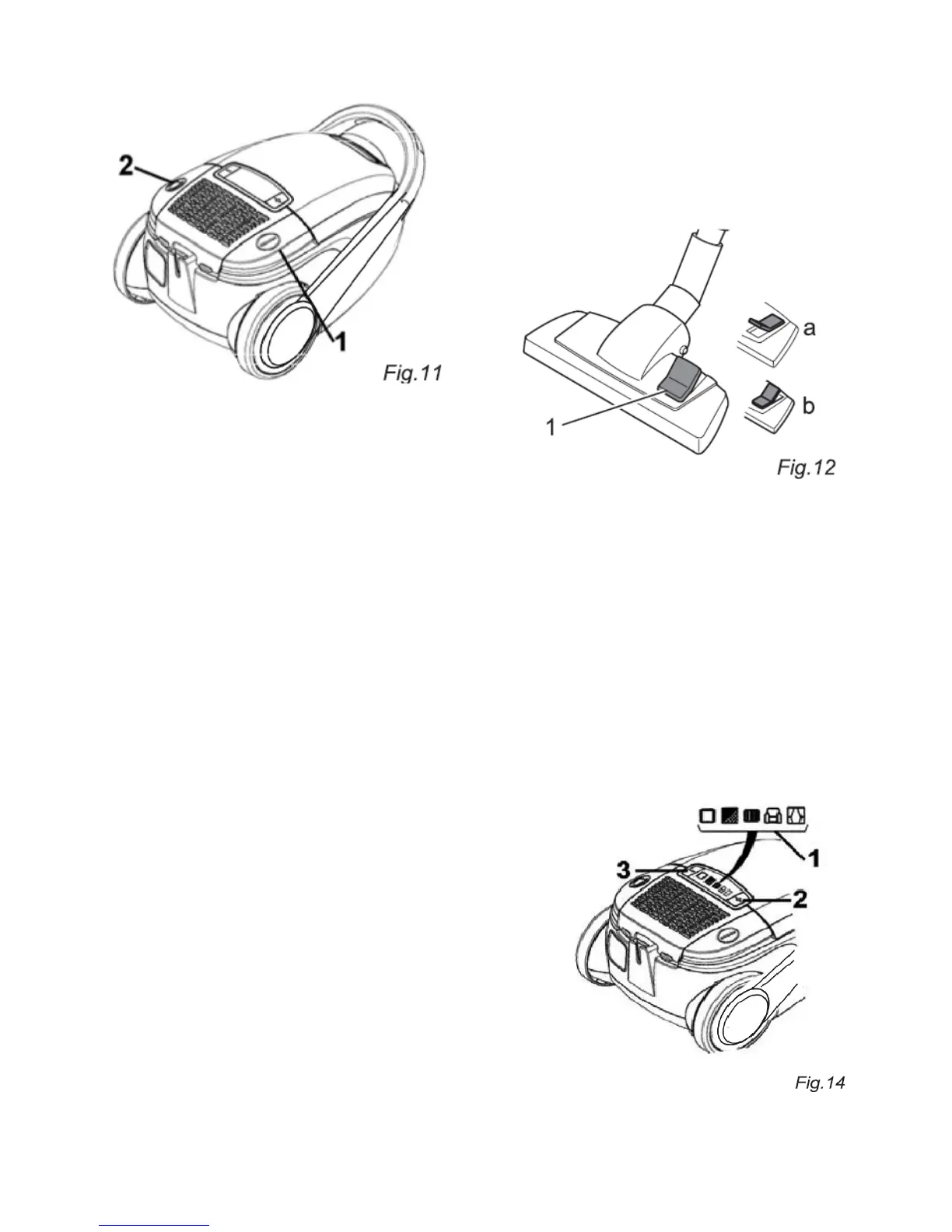 4. Set the nozzle switch to “carpet” or “hard floor” according to the floor (fig. 12/1 above) to be cleaned: