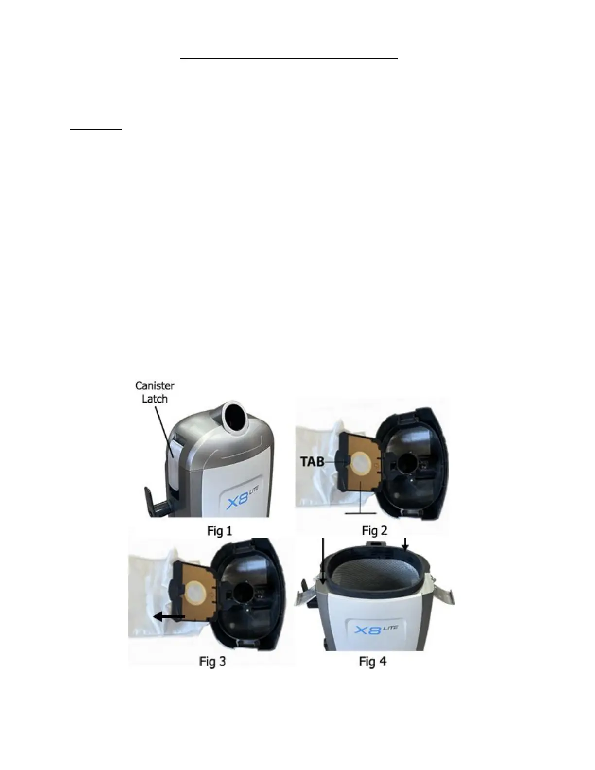 3. Pull the tab on the HEPA dust bag holder out slightly and flip upwards. (Fig 2)