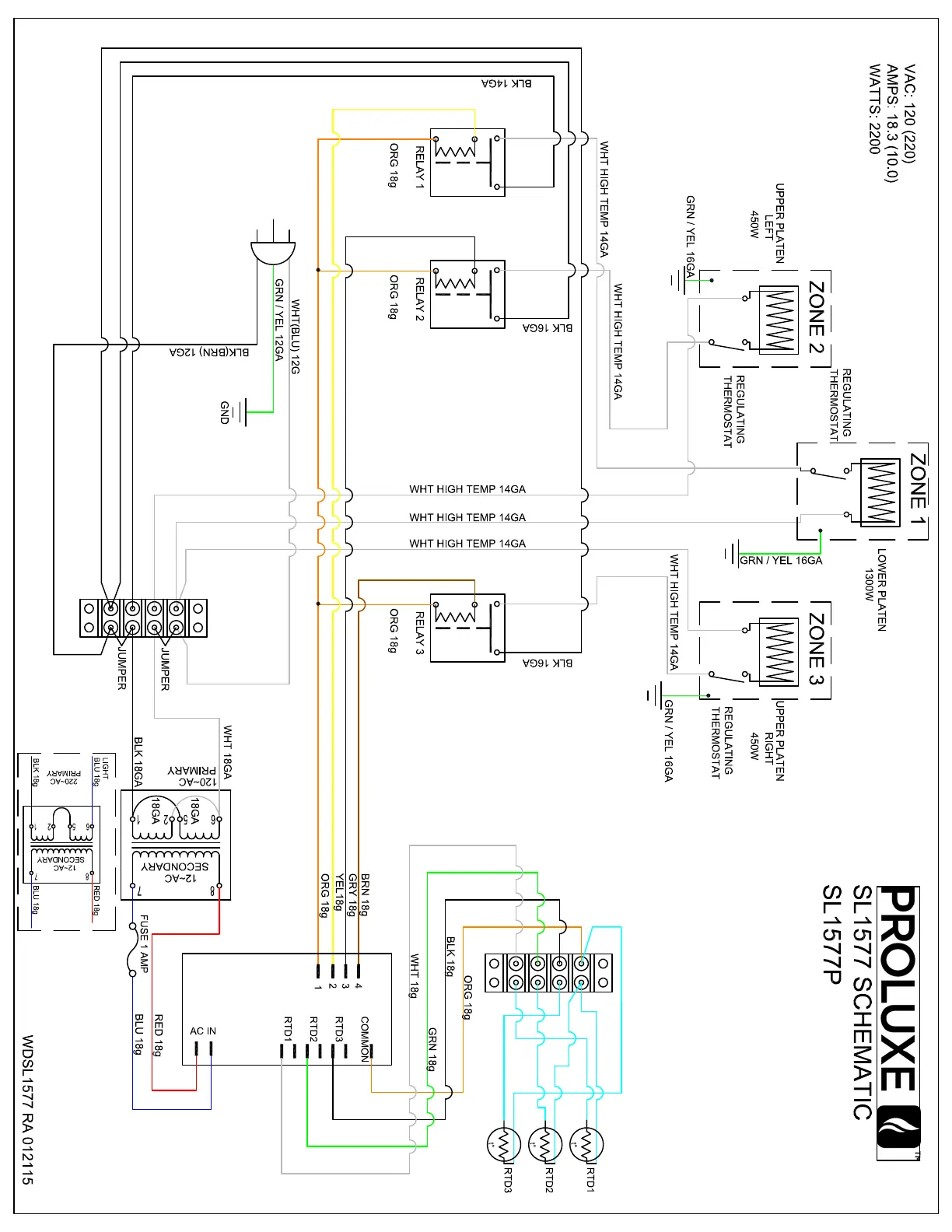 Proluxe SL1577 - Schematic Diagram and Wiring; Power and Zone Wiring Configuration; Controller and Sensor Connections