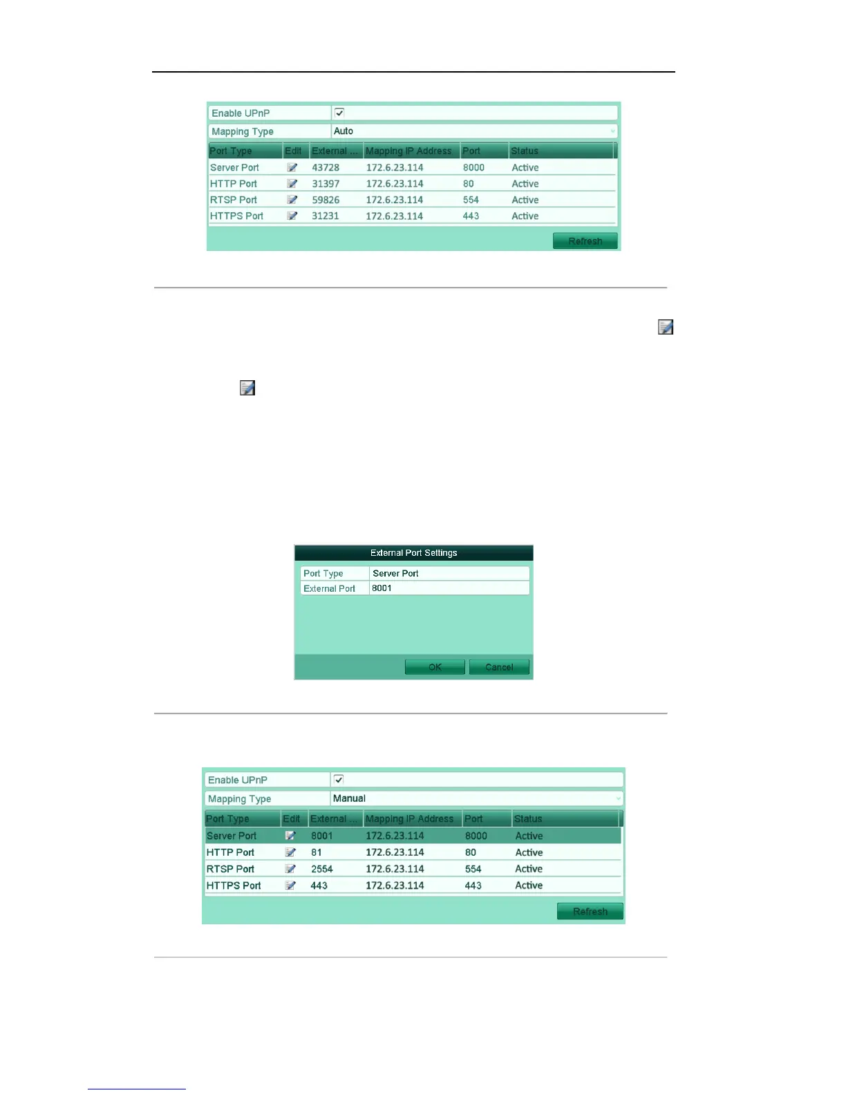 1) Click to activate the External Port Settings dialog box. Configure the external port No. for