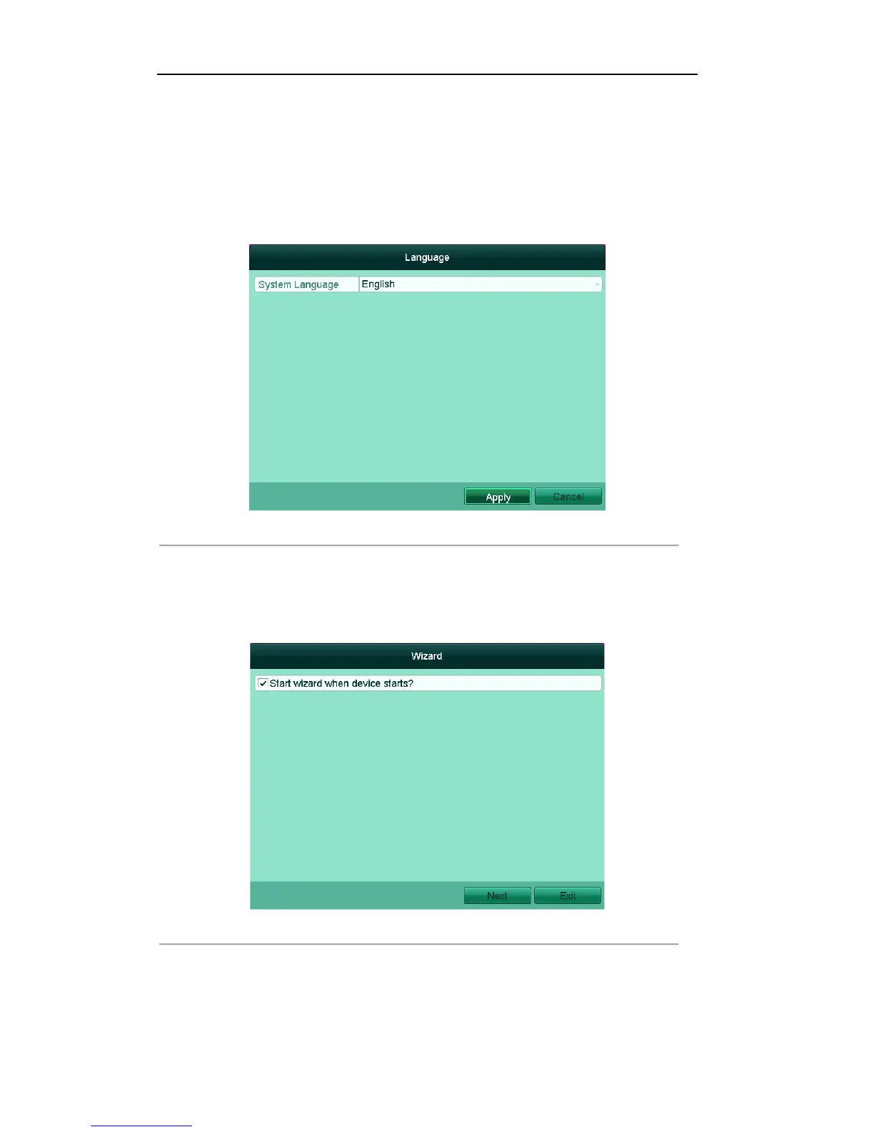 1. You can set the system language after the device is started. Click Apply to save the language settings.